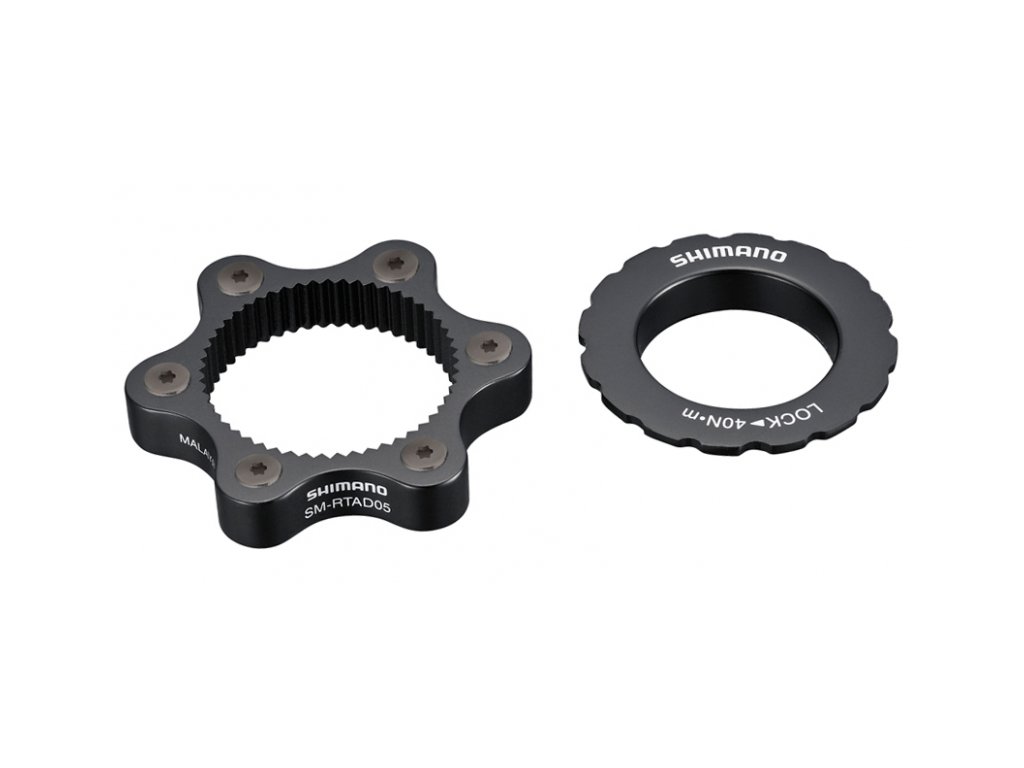 Adaptér Shimano pro montáž kotouče s 6 dírami na náboj s centerlock uchycením. Adaptér nelze použít s kotoučem s alu unašečem (např. SMRT86). Pro náboje s pevnou osou 15/20mm. Hmotnost 60 g. Balení obsahuje jeden adaptér s matkou.