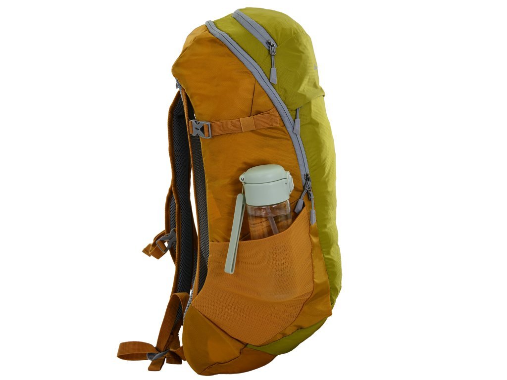 Outdoorový batoh REGRE o objemu 28 litrů je navržen pro maximální komfort a funkčnost. Je vyroben z voděodolného materiálu, což zajišťuje ochranu vašich věcí i v nepříznivých povětrnostních podmínkách. Batoh má jednu hlavní komoru a vnější kapsy, včetně kapsy na víku se zipem, boční kapsy ze síťoviny a integrované nádoby na nápoje se sací trubicí. Pro snadnou manipulaci jsou zipy vybaveny delšími úchyty. Batoh je vybaven bederním pásem, polohovatelnými a vyztuženými ramenními popruhy a náprsním stahovacím popruhem, což zajišťuje pohodlné nošení. Zádový systém Air Channel zlepšuje ventilaci a pohodlí při nošení. Dále nabízí kompresní stahování pro úpravu objemu a pláštěnku pro ochranu před deštěm. Reflexní proužky zvyšují vaši viditelnost při nízkém osvětlení. S rozměry 52 x 26 x 20 cm a hmotností 750 g je tento batoh ideální pro outdoorové aktivity a různé dobrodružství.