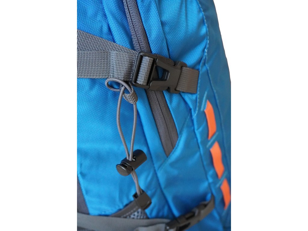 Upínací pásky: 7 pásků pro uchycení trekingových holí, helmy, cepínu a dalšího vybavení.