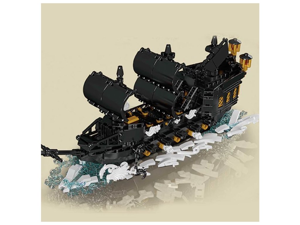 - Černá pirátská loď s děly, plachtami a zlatými prvky