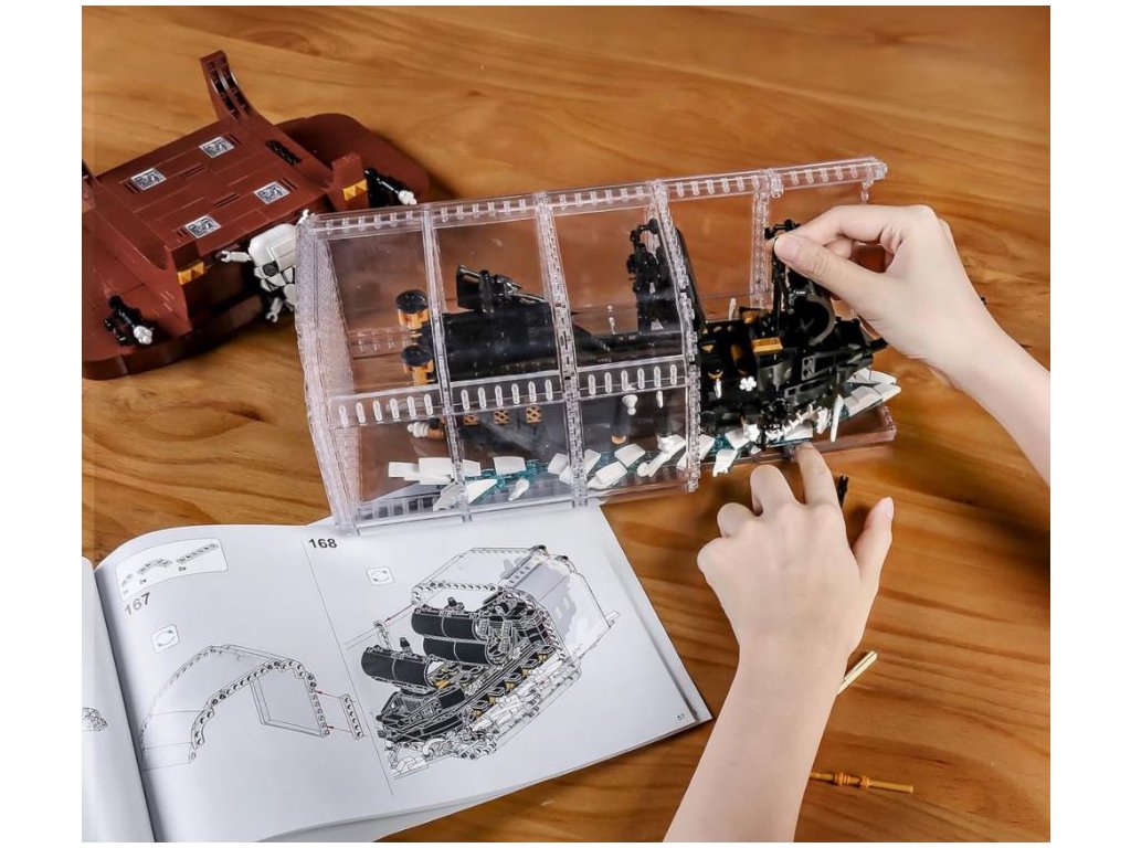 Stavění je komplexní a nadchne především zkušenější stavitele. Každý krok je popsán v barevném obrázkovém návodu a jednotlivé balíčky dílků usnadní postupnou stavbu. Finální dojem z dokončeného modelu je ohromující – stavba v láhvi o délce více než půl metru.