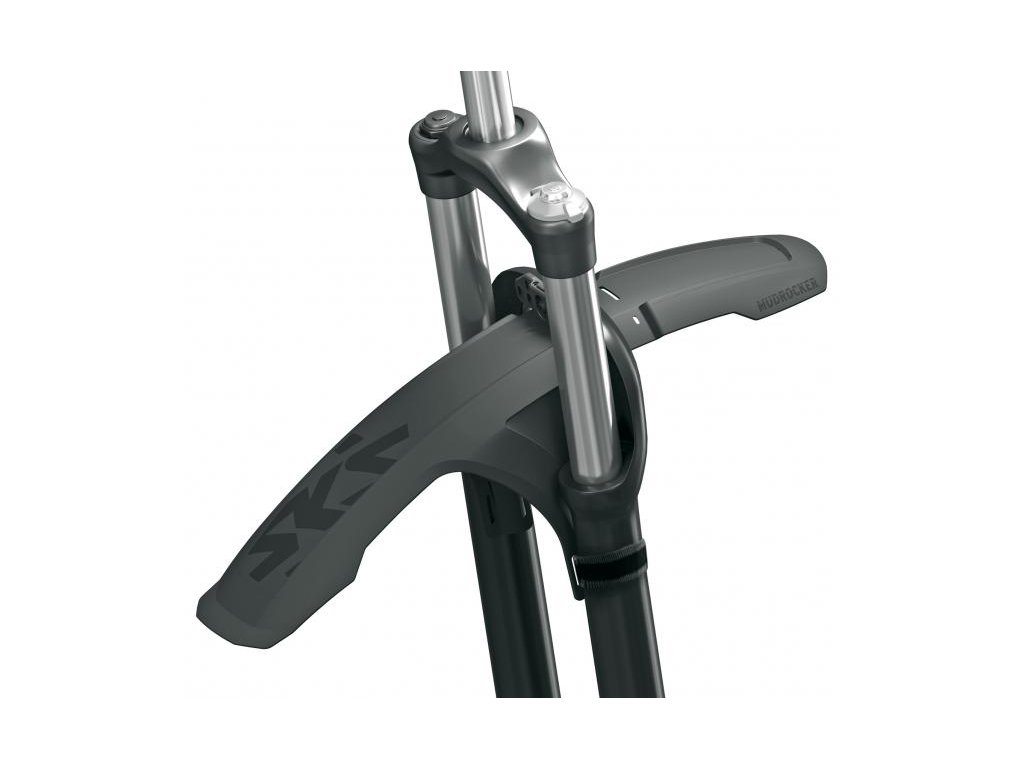 Jednoduchý designový blatník pro celoodpružená kola. Jednoduchý designový blatník pro celoodpružená kola. Uchycuje se na můstek vidlice, zde se uchytí dodávaným adaptérem. Blatník může být připevně k můstku také páskami se suchým zipem či plastovými stahovacími pásky. Po stranách se připevní dodávanými suchými zipy k nohám vidlice. Blatník zároveň chrání nohy vidlice z vnitřní strany. Blatník se dá upravit nůžkami v případě potřeby.