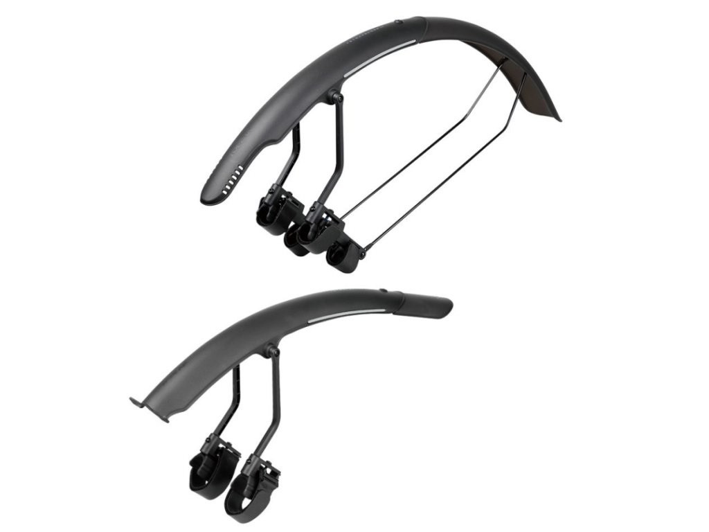 Zadní dvoubarevný blatník s rychlou, bezpečnou a jednoduchou montáží. Nastavitelné vzpěry zajišťují těsnější přilnutí k pneumatice a vynikající ochranu před blátem, zatímco vysoce leštěná spodní strana pomáhá předcházet usazování nečistot a usnadňuje čištění. Přiložené reflexní nálepky 3M zajišťují bezpečnost v noci.