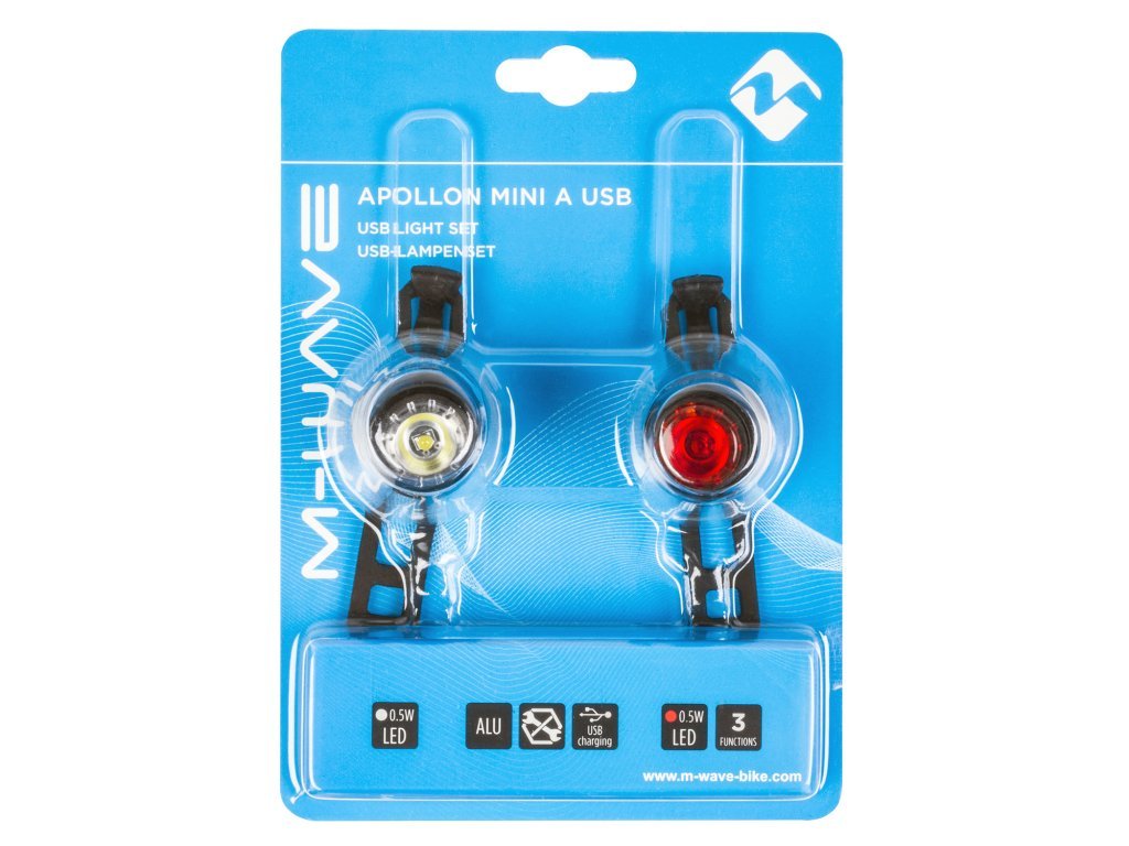 blikačka přední+zadní M-Wave Apollon Mini USB černé