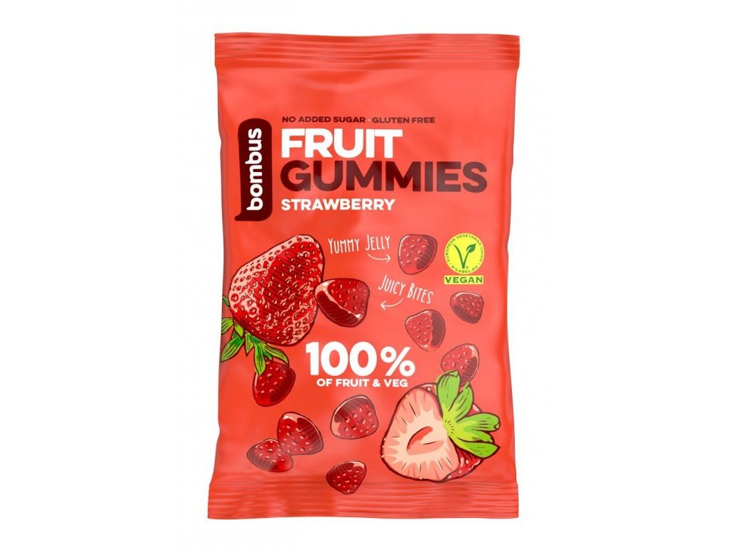 Neodolatelné jahodové gummies vás dostanou svou vůní a svěží ovocnou chutí! Obsahují 100 % ovocné složky bez přidaného cukru, barviv a konzervantů a jsou zdravou alternativou přeslazených cukrovinek.