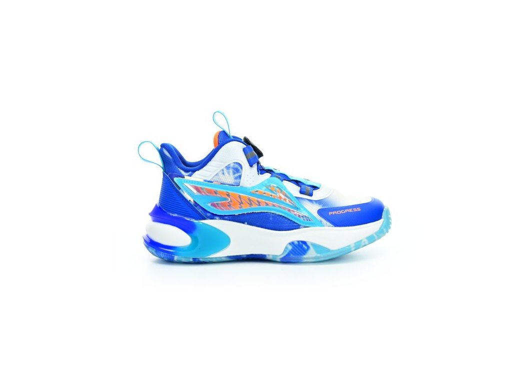 Dětské sportovní boty JUNIOR BASKETBALL s inovativní technoloí upínacího kolečka s lankem namísto klasických tkaniček. Kolečko usnadňuje nazouvání a vyzouvání, šetří čas a námahu a drží nohy na místě, eliminuje problém s volnými tkaničkami a poskytuje lepší stabilitu a podporu při nejrůznějších sportovních aktivitách. Boty jsou navrženy tak, aby se daly jednoduše nazout bez použití rukou díky unikátní konstrukci zvýšené vyztužené paty slip-in.