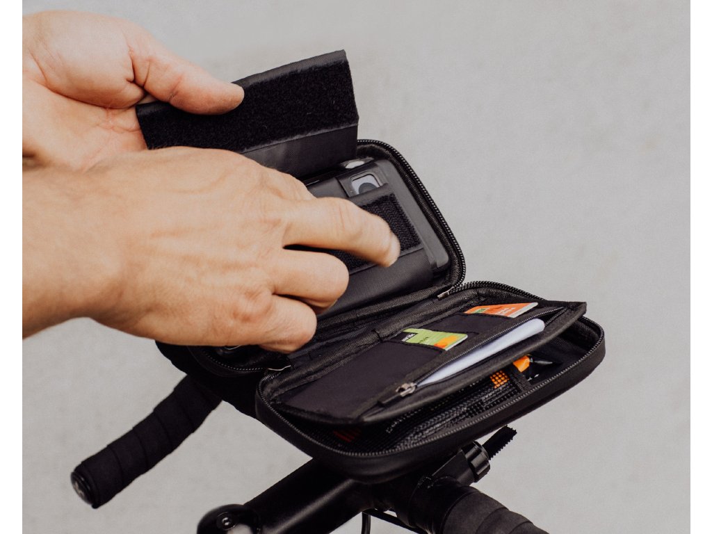 Brašna na řidítka ve voděodolném provedení ochrání nejen váš telefon, který v nímůžete zároveň také ovládat. Je vyrobena z odolného vyztuženého materiálu a dobře drží