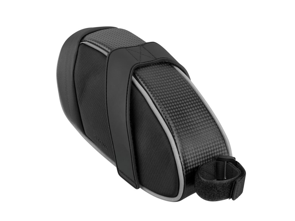 Brašnu „Stone“ můžete díky pevným popruhům se suchými zipy snadnonainstalovat pod sedlo a na sedlovku, nebo z kola lehce sejmout.