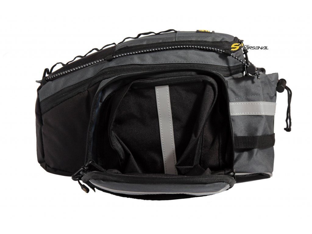 Universální brašna na zadní nosič kterou uplatníte na menší výlety, na cestu do práce, nebo pro rybáře juniora. Zásadní výhodou brašny je její členění a variabilita objemu. Ze středně velké brašny můžete mít po rozevření bočních kapes brašnu o objemu až 20 litrů.