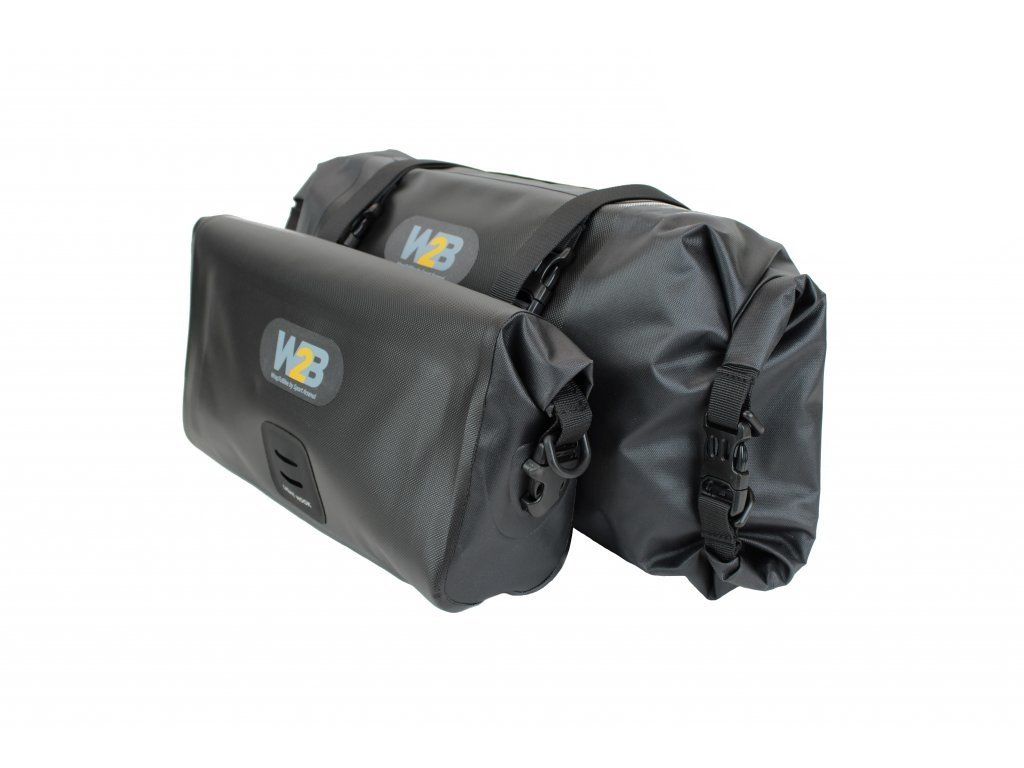 Vodotěsná dvojbrašna vyrobená z nylonu s termoplastickým zátěrem dosahuje vysoké pevnosti a 100% vodotěsnosti. Technologie zpracování dbala na maximální užitkovost brašny v extrémních podmínkách. Švy jsou vysokofrekvenčně svařované a střih brašny je vytvořen tak, aby jich bylo co nejméně. Objem obou brašen je až 12 litrů, zmenšení objemu dosáhneme větším zarolováním brašny a zapnutím na přezku.