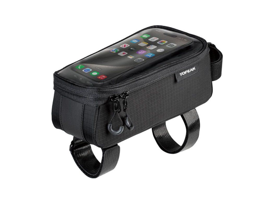 Brašna na horní trubku a pouzdro na telefon 2 v 1 s průhlednou ochrannou fólií, která umožňuje ovládat telefon, i když je v brašně. Druhá přihrádka brašny je vybavena přepážkami, které umožňují snadné uspořádání a uložení drobných předmětů, jako jsou kreditní karty, drobné peníze, klíče a další osobní věci.