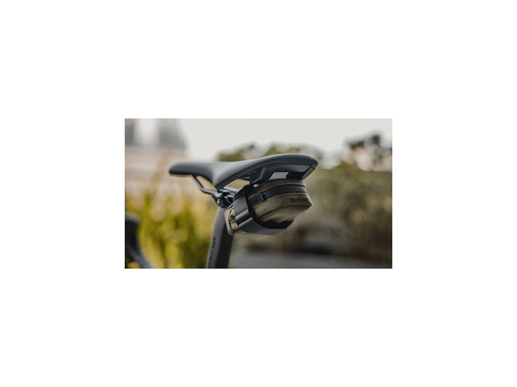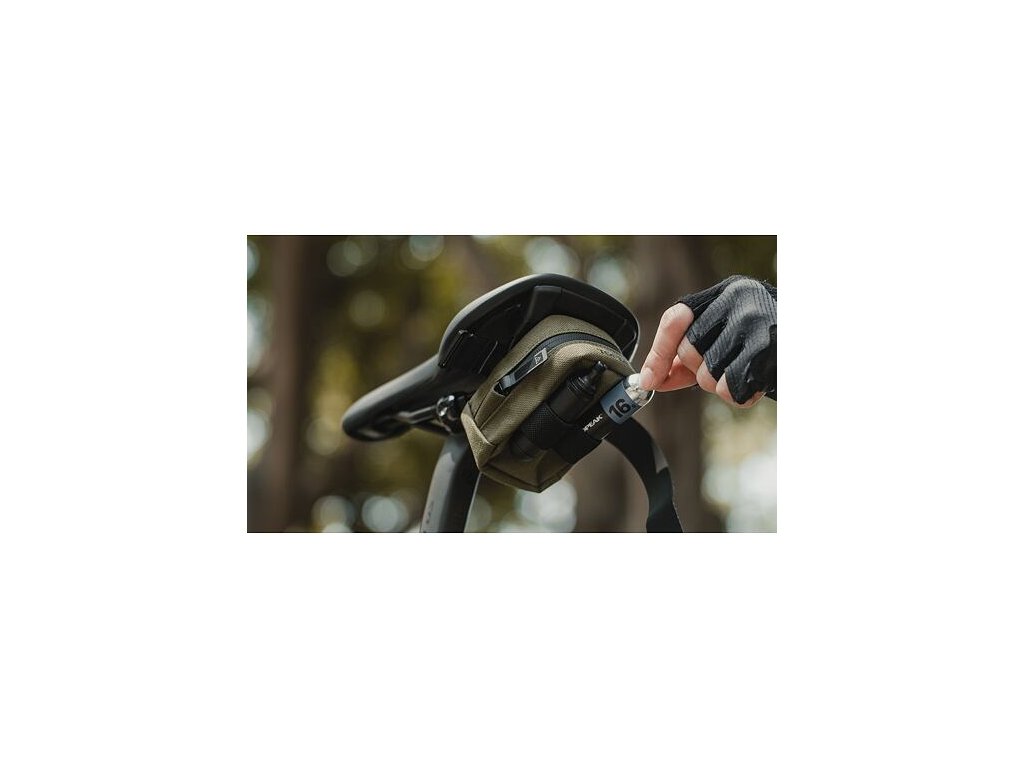 Kompaktní podsedlová brašna s popruhem na suchý zip pro přepravu duše, montpák, případně dalších drobností pro bezpečnou a jistou jízdu. Vestavěná protiskluzová tkanina zajišťuje bezpečnost při upevnění. K dispozici jsou tři velikosti a dvě barvy.