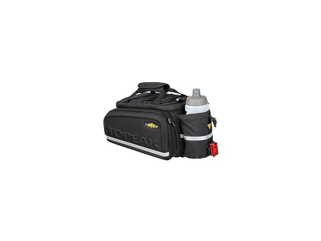 Objemná brašna MTX TrunkBag s hlavní dělenou komorou, dvěma rozšiřitelnými bočnicemi a zadním držákem na láhev. Jedinečný konstrukční postup zajišťuje tuhost a voděodolnost. Kompatibilní se všemi nosiči MTX QuickTrack® s připevněnými bočními rámy. Při použití bočních kapes na nosičích MTX BeamRacks jsou nutné rámy MTX Dual Side.