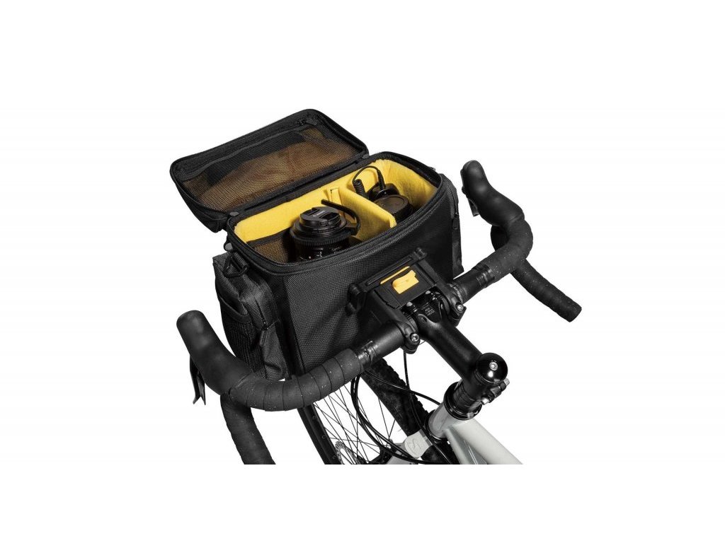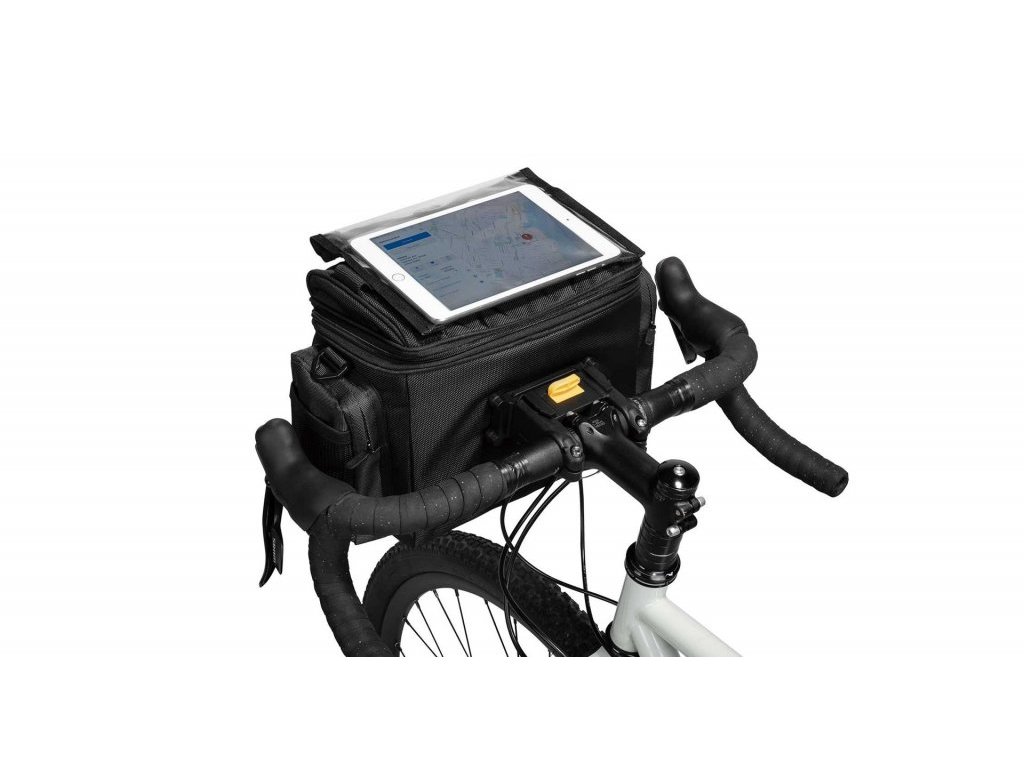 Vychytaná taška na řídítka s upevněním QuickClick ™. Díky přiloženému ramennímu popruhu, lze tašku pohodlně využit i mimo kolo. Perfektní na výlety a dojíždění. Součástí balení je pláštěnka.