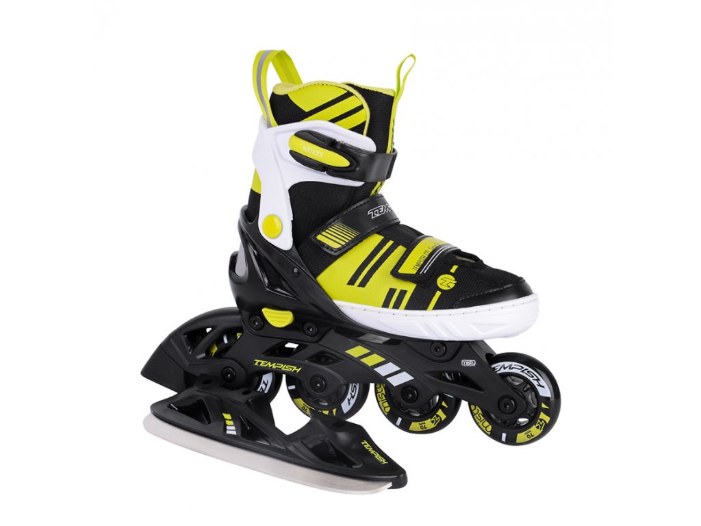 Dětské roztahovací brusle se speciální duální konstrukcí pro celoroční rekreační bruslení. Konstrukční systém umožňuje záměnu zimních bruslí za podvozek s kolečky. Jednoduchým povolením dvou šroubů přeměníte zimní brusle na kolečkové inline brusle a naopak.