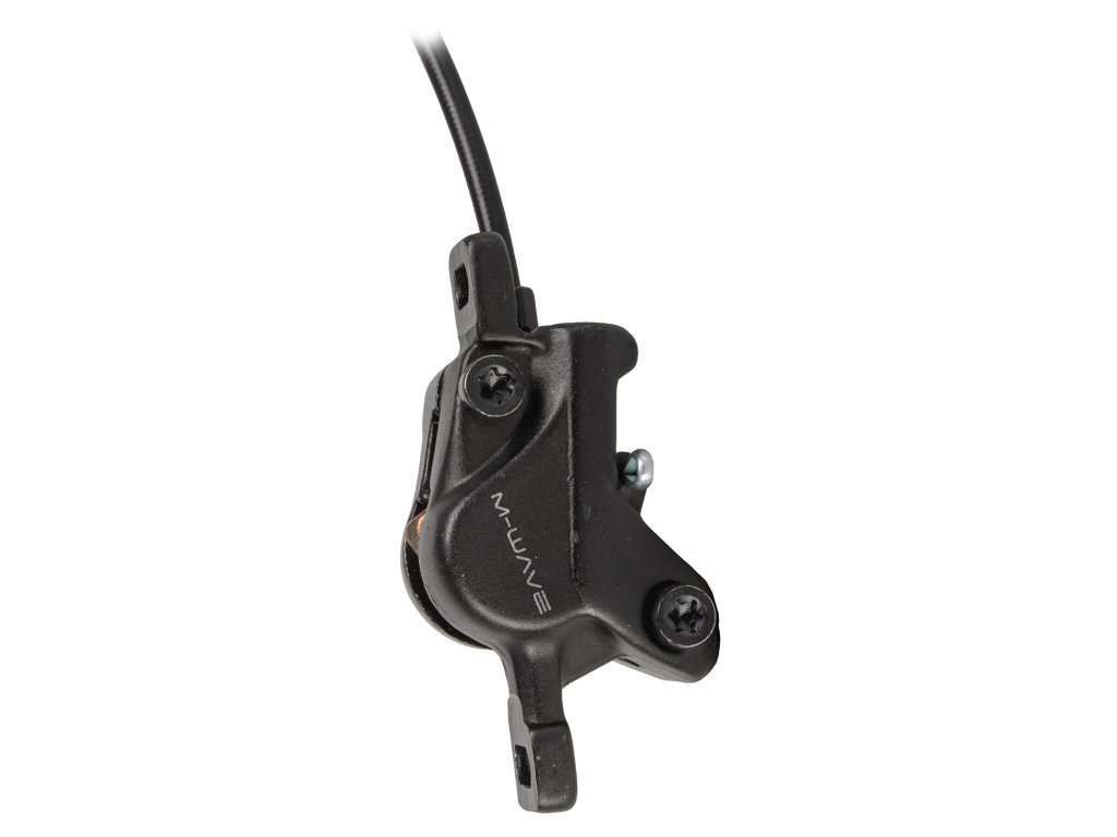 Třmen M-Wave přední s destičkami bez chladiče + levou brzdovou páku, propojeno hadicí 80cm a naplněno minerálním olejem, odvzdušněno