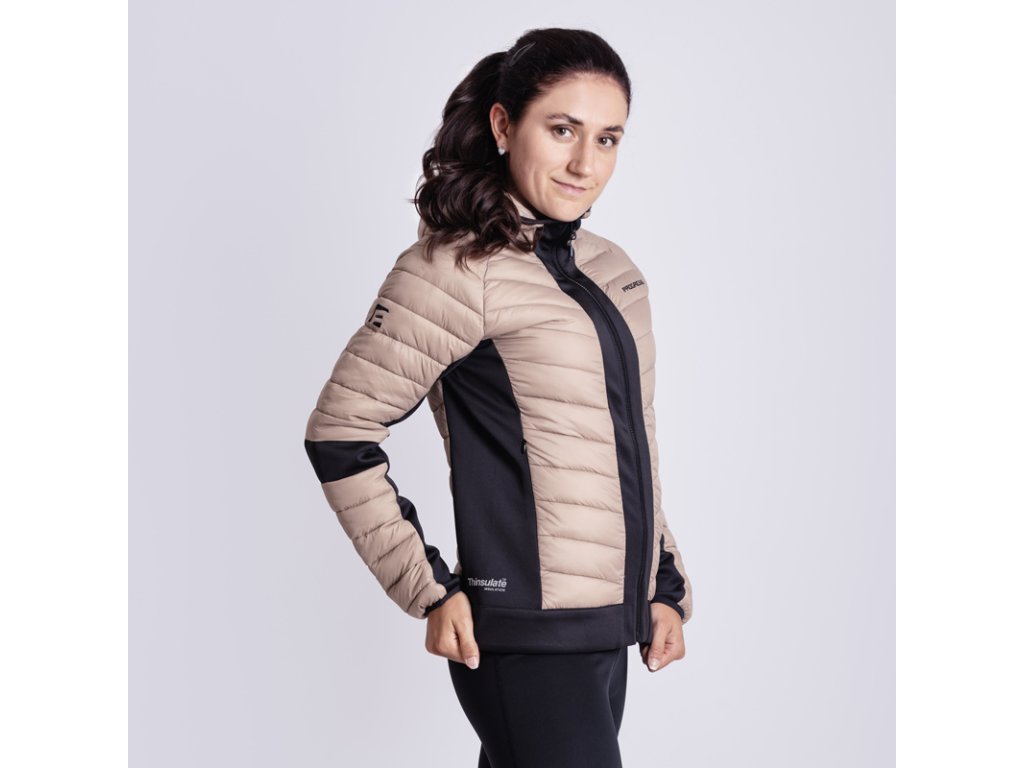 Dámská hybridní bunda JANNU je ideální volbou pro všechny ženy, které hledají funkční, lehkou a stylovou bundu do chladnějších dnů. Kombinuje dva vysoce kvalitní materiály – odolný nylon s výplní 3M™ Thinsulate™ v přední a zadní části a pružný polyesterový úplet po stranách a na rukávech. Díky tomu bunda skvěle udržuje tělesné teplo, zároveň odvádí vlhkost a umožňuje maximální volnost pohybu.