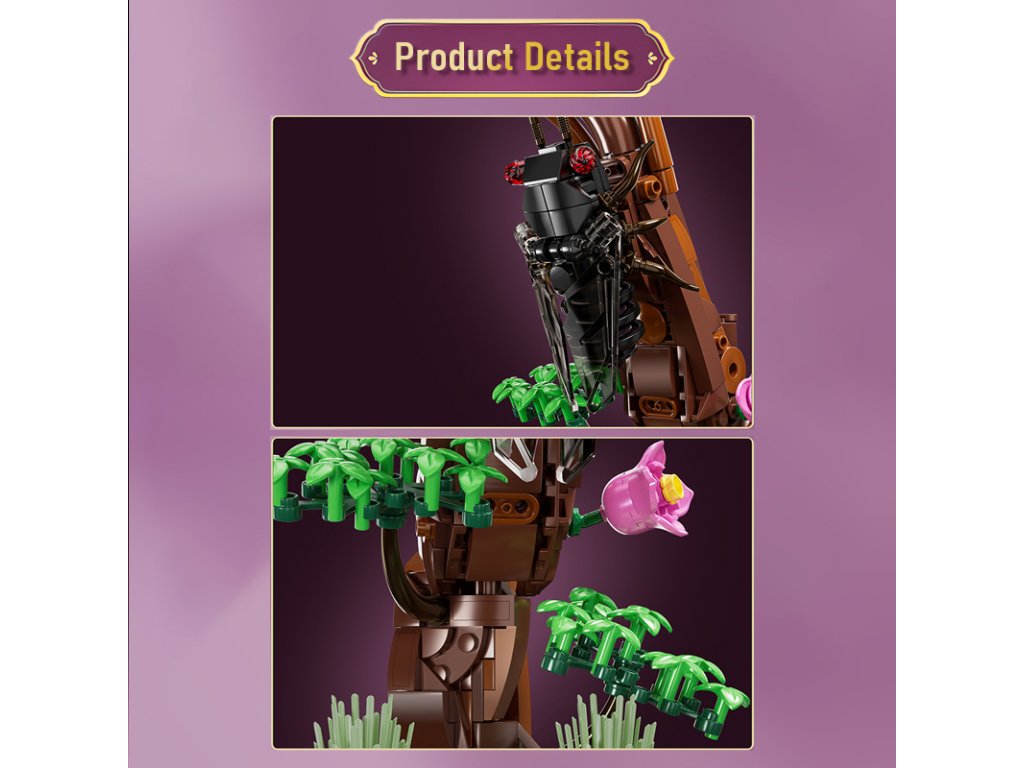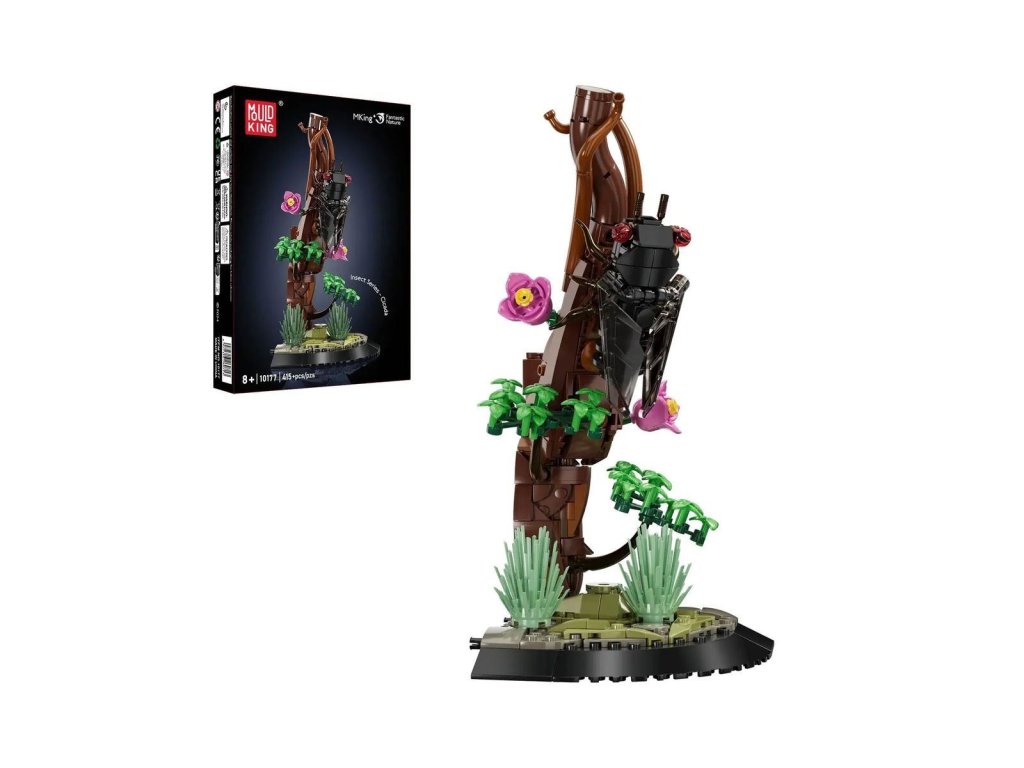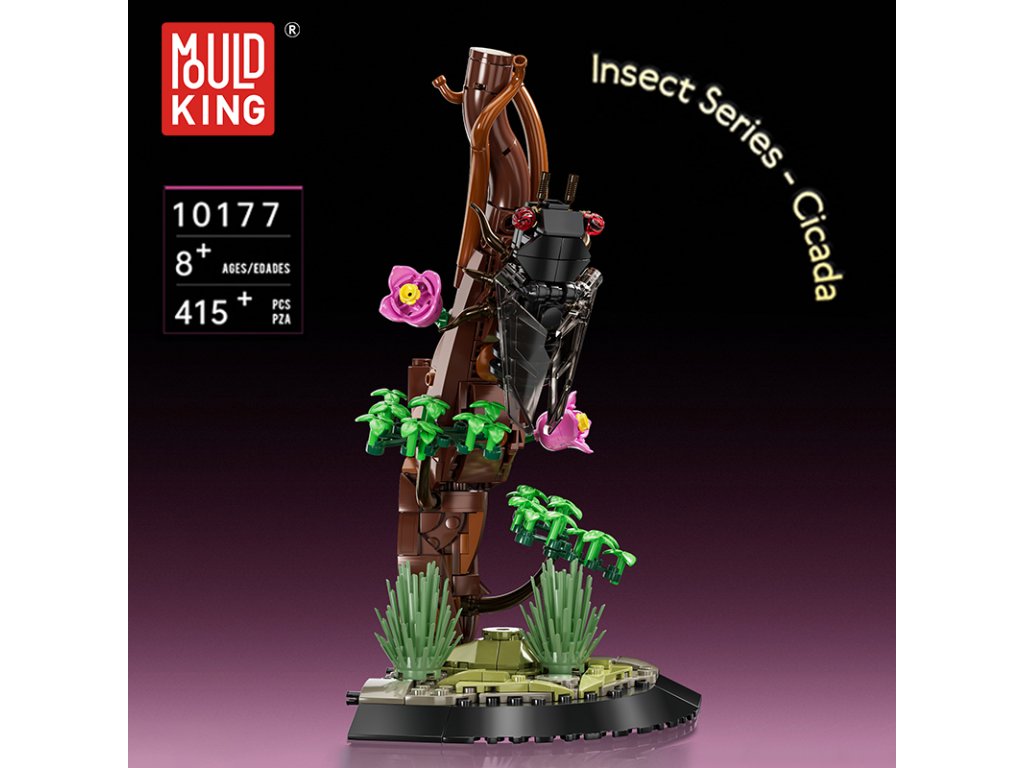 Detailní stavebnice MOULD KING 10177 Cikáda na větvi obsahuje 416 dílků a vytváří realistický model cikády přisedlé na stromové větvi s květy. Hotový model měří téměř 28 cm na výšku a je součástí série Fantastická příroda – Hmyz. Skvělý jako dekorace i sběratelský kousek.
