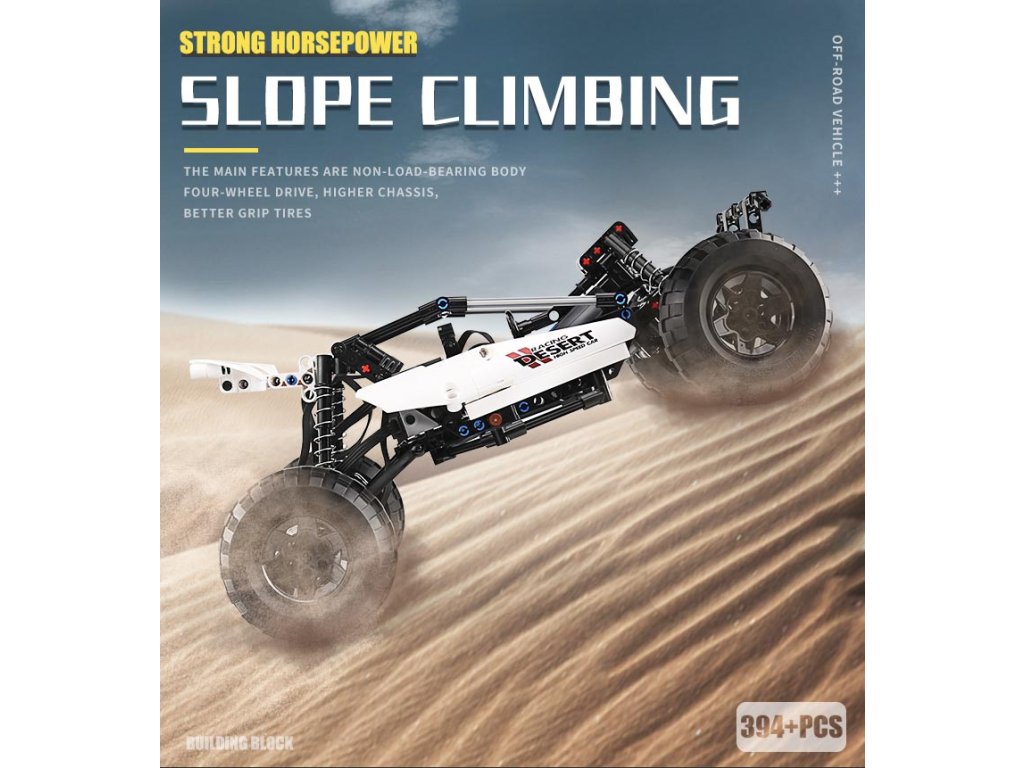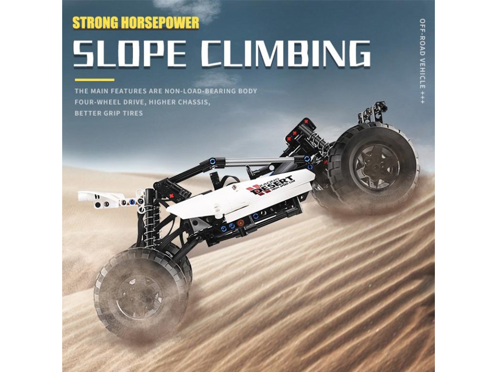 První pouštní buginy vznikaly z přestavěných sériových aut určených pro jízdu po dunách a plážích. Postupně se z nich vyvinul samostatný závodní fenomén. MOULD KING 18001 – Bugina R/C Desert Racing vám dovolí vychutnat si tuhle legendu v podobě stavebnice, která se po sestavení promění v plně funkční závodní stroj.