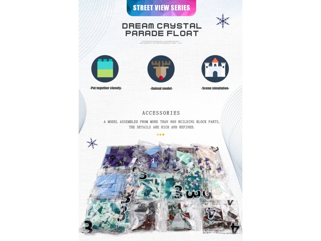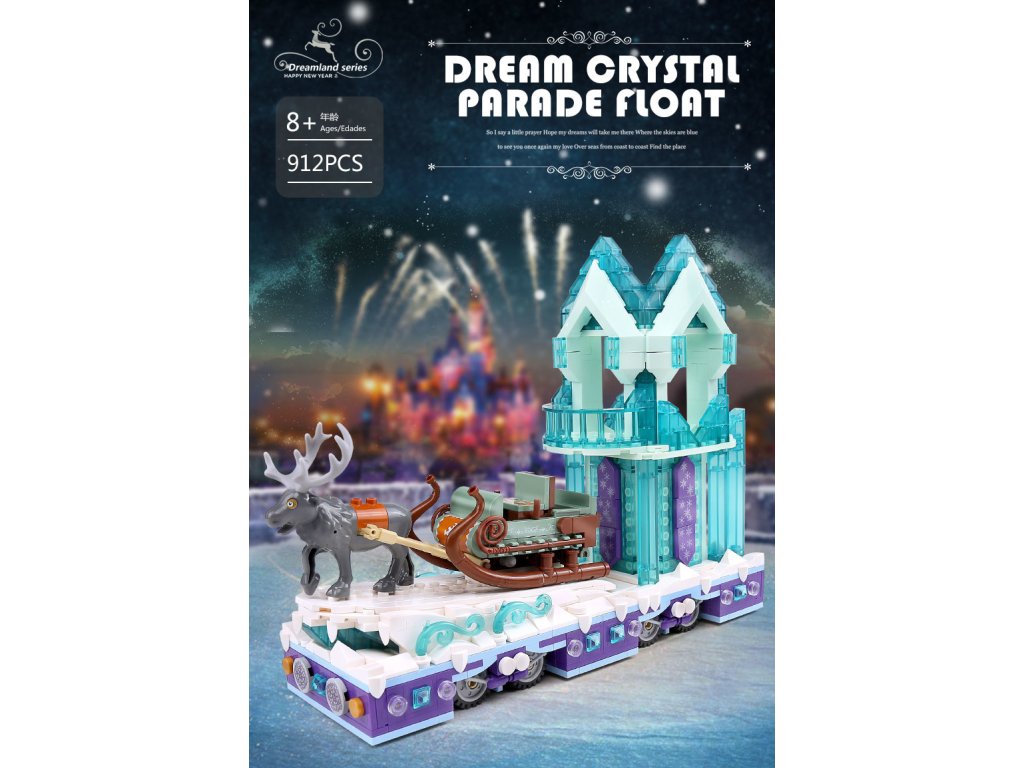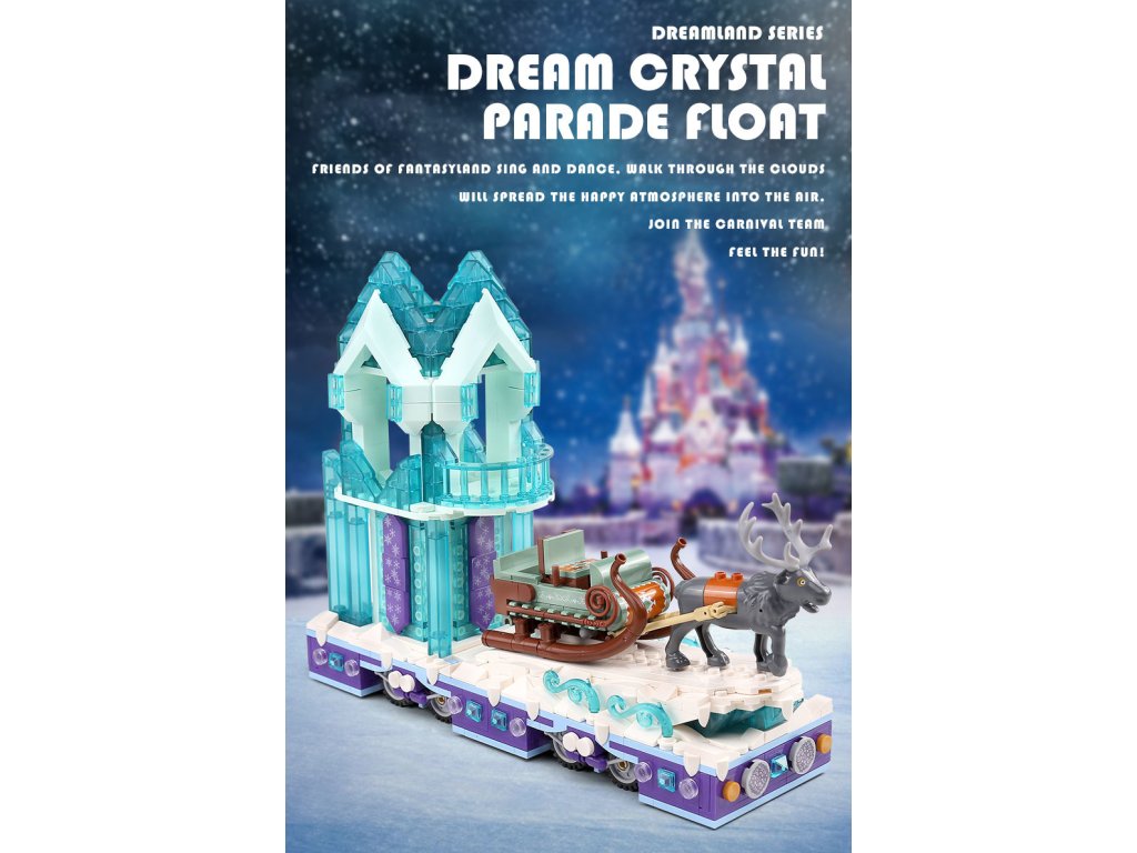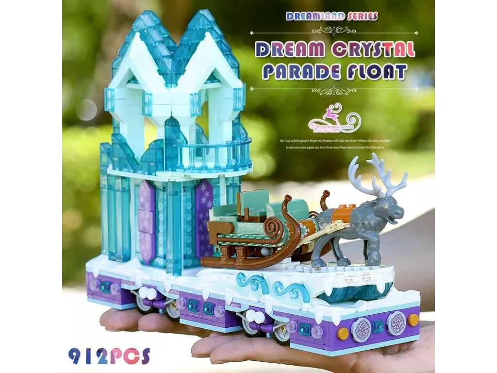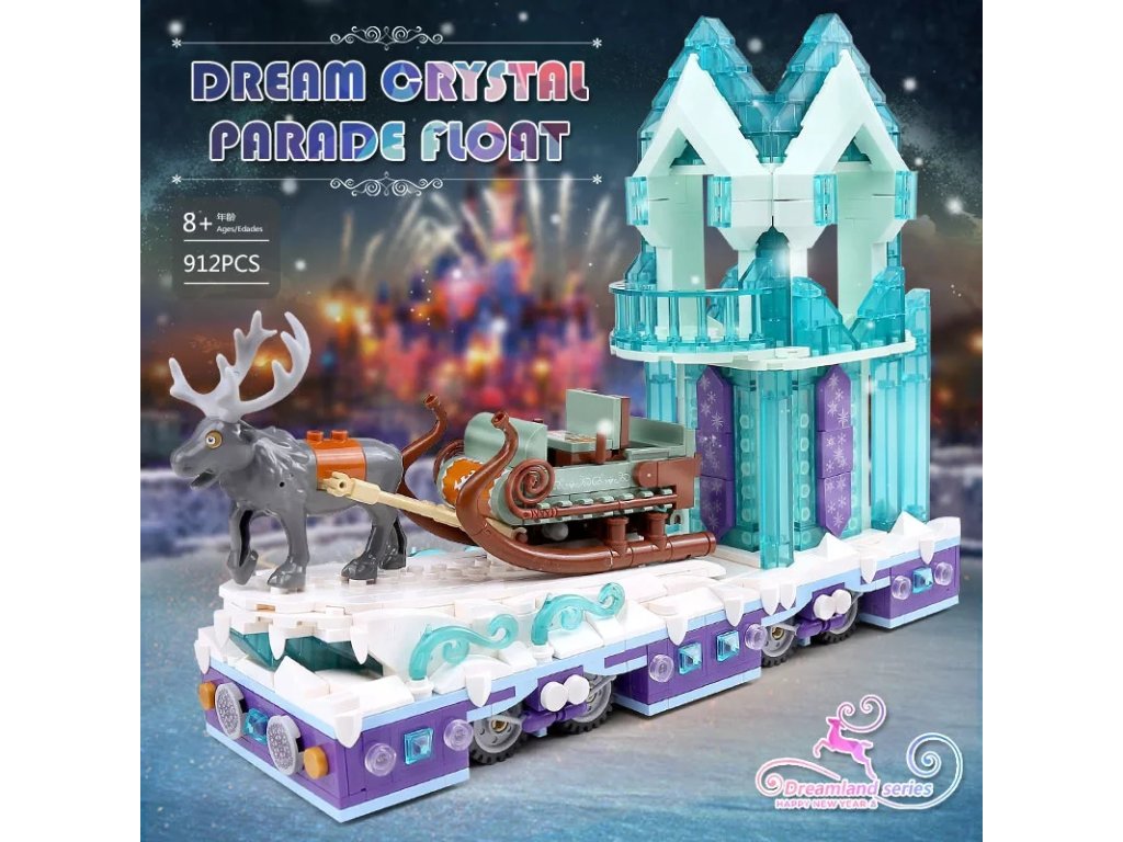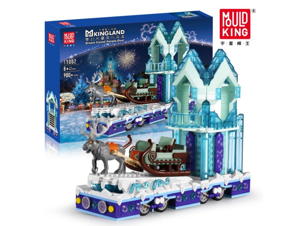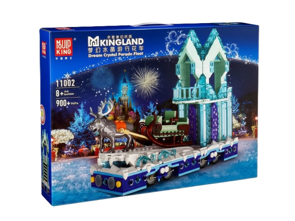 MOULD KING 11002 Krystalový průvodní vůz se saněmi a sobem z pohádkové série Dreamland vás přenese do světa zimních slavností a kouzelné atmosféry. Na plošině zdobené ledovými krystaly se vezou luxusní saně tažené majestátním sobem – perfektní stavebnice pro malé i velké snílky, kteří milují příběhy plné fantazie a kouzel.