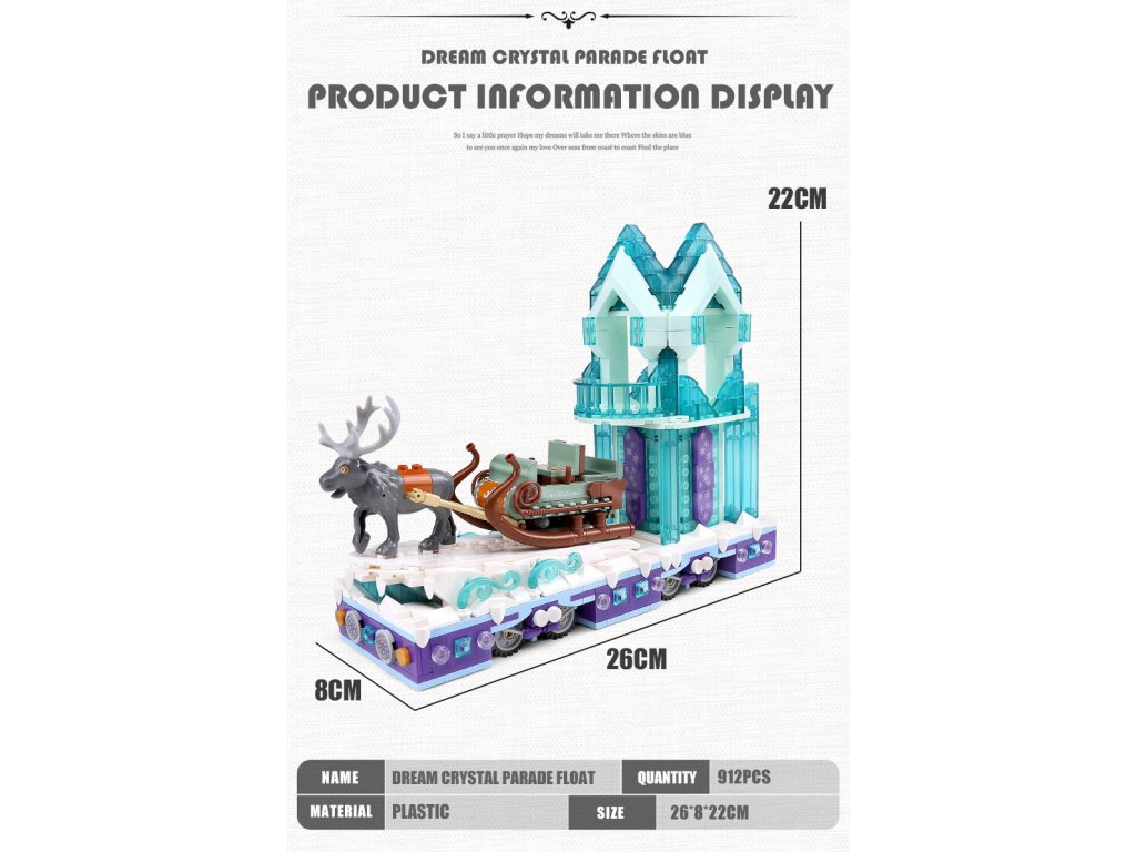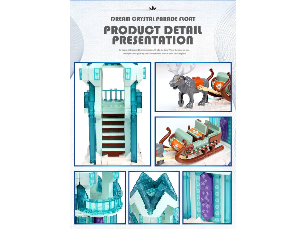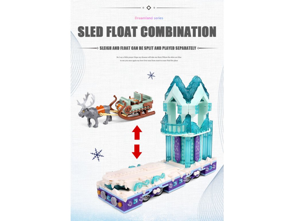 Součástí modelu je oddělitelná kombinace – saně se sobem lze odpojit a hrát si s nimi samostatně, zatímco krystalová plošina poslouží jako dekorativní exponát.