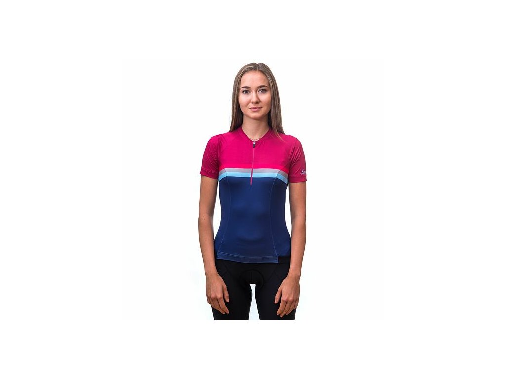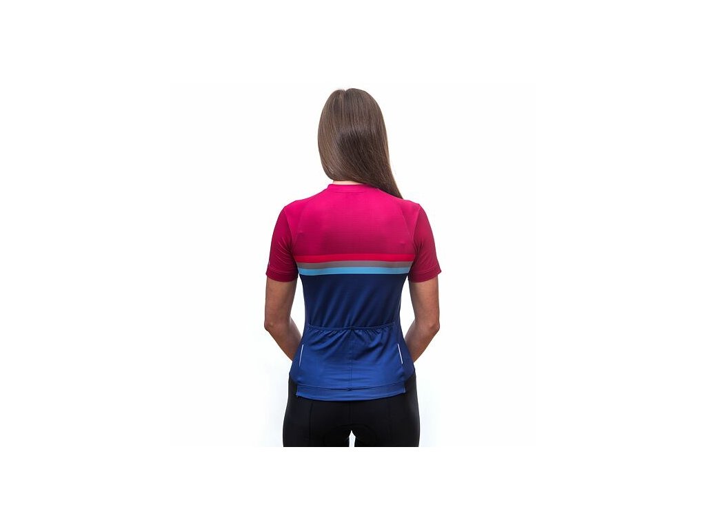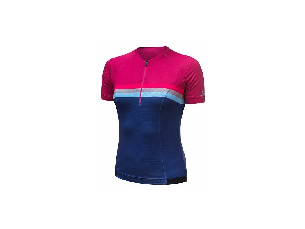Dámský cyklistický dres s anatomickým střihem a raglánovými rukávy. Superrychlý odvod vlhkosti od pokožky a ochrana UPF25 proti UV záření. Postranní kapsa na zip.