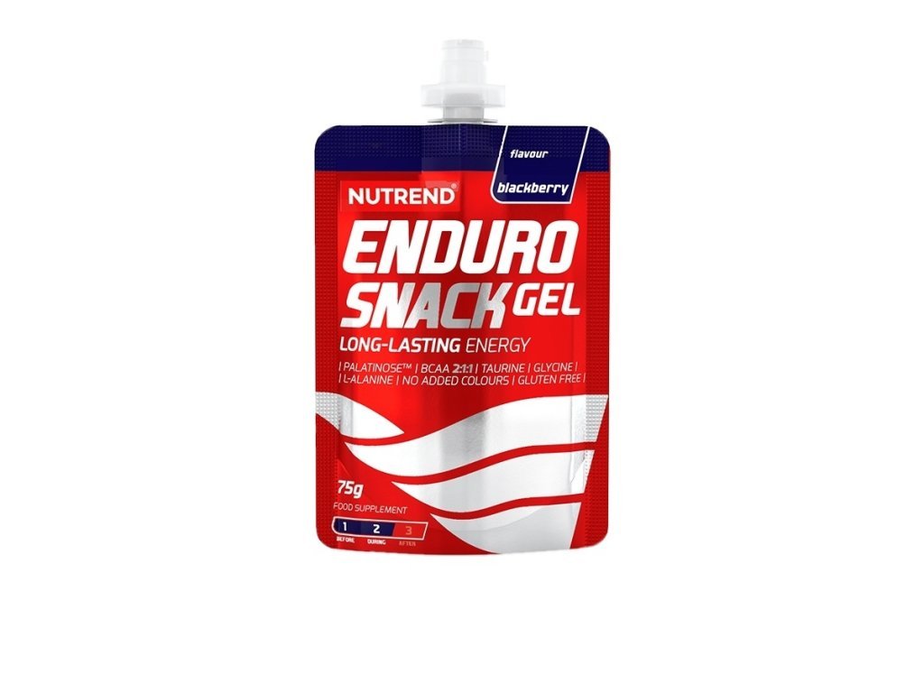 Složení ENDUROSNACK příchuť ostružina: voda, 31,5 % isomaltulóza - PalatinoseTM (je zdrojem fruktózy a glukózy), glukóza, zahušťovadlo xanthanová guma, taurin, glycin, L-leucin, L-alanin, regulátory kyselosti kyselina citrónová a kyselina jablečná, L-isoleucin, L-valin, konzervanty benzoan sodný a kyselina sorbová, L-karnosin, aroma, sladidla acesulfam K a sukralóza.