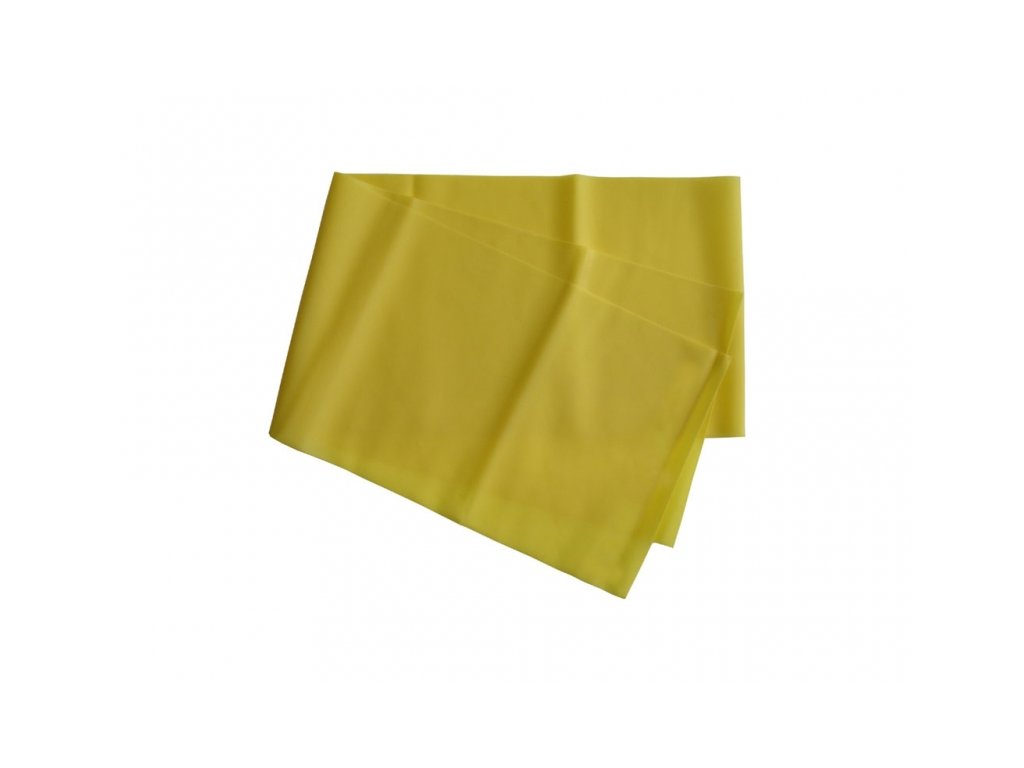 Stuha gumová na aerobic 120×15cm, o tloušťce 0,45mm-žlutá. jedná se o druhou nejslabší stuhu po růžové. Slouží k lehkému posilování různých svalových partiích při aerobiku nebo při jiných příležitostech.
