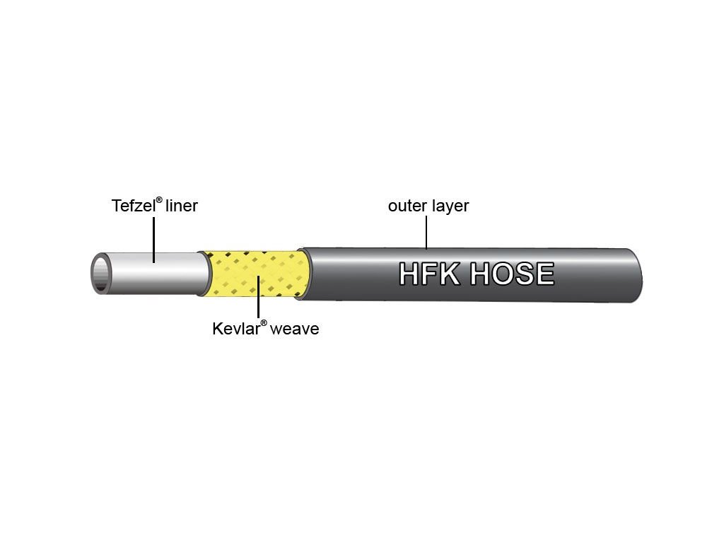 HFK kevlarová konstrukce hadičky a Tefzel vnitřní trubička