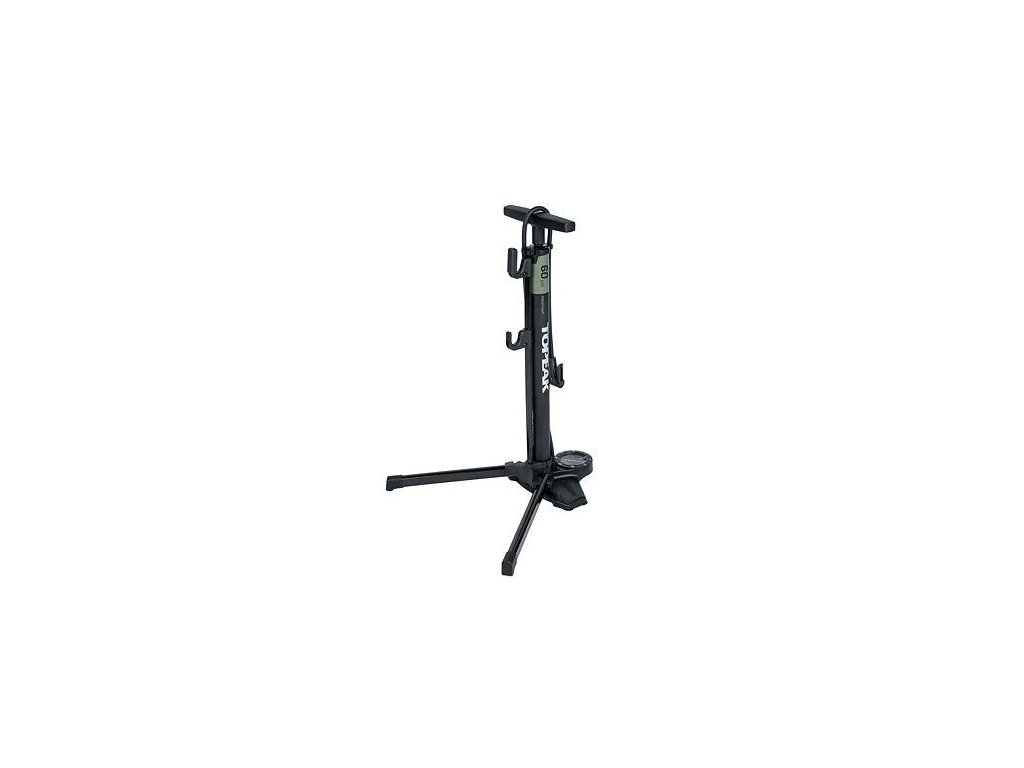 Dílenská pumpa JoeBlow Mountain EX s integrovaným stojanem na kolo pro snadnou údržbu kola. Hák na stojanu je vybaven gumovým obložením, aby nedošlo k poškození rámu kola. S nosností 30 kg a velkým objemem je vhodný zejména pro horská kola