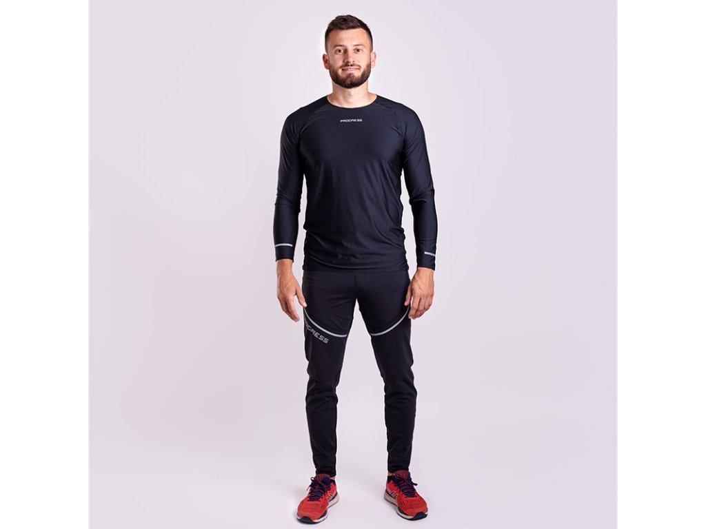 kalhoty pánské Progress REFLEX běžecké legíny černé