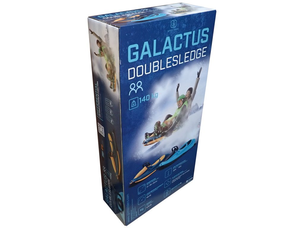 Řiditelný bob GALACTUS dvoumístný. Bob je vyrobený z pevného polyetylenu, který má zušlechťující příměsi. Díky tomu má bob vyšší nosnost než srovnatelné boby a také je odolnější proti poškození. Zatáčení pomocí volantu napojeného na diferenciál - zvyšuje rychlost v zatáčkách, protože každá lyže může zatočit pod jiným úhlem kdy bob plynule jede a nepřibrzďuje. Bob vyrábí tradiční český výrobce Plastkon. Výhodou je samonavíjecí mechanismus tažného lana. Masivní brzda s pružinou, pro navrácení do původní polohy. Při montáži nejsou pouzívané žádné kovové prvky, ani šrouby, nemusí být obava z koroze a montáž není nutná - vše je jednoduchý click-on mechanismus - vše se spojuje pomocí plastových "zámečků" do sebe.