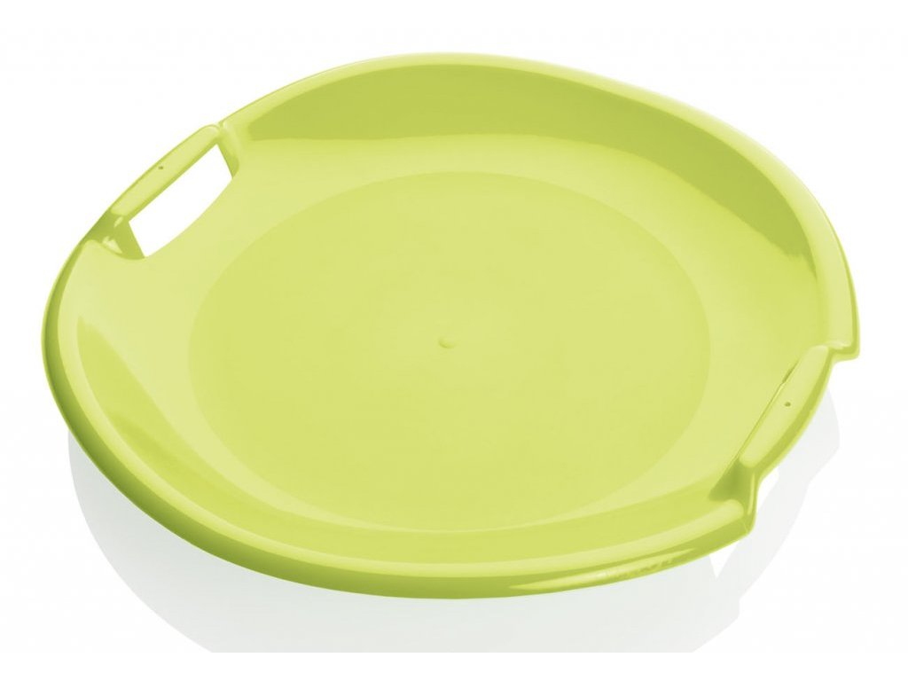 Sáňkovací talíř průměr 54 cm, do 45 kg, určeno pro rekreační sport, různé barvy. Jedná se o další z řady jednoduchých pomůcek pro zimní radovánky na sněhu.