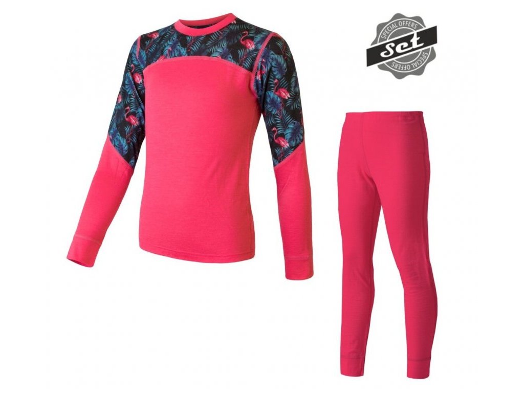 komplet dětský SENSOR MERINO IMPRESS set magenta/floral