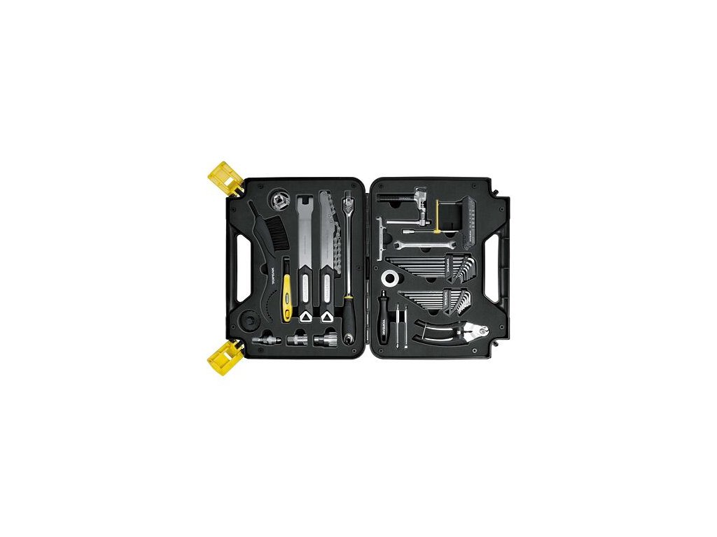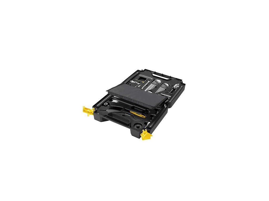 Sada nářadí na kolo v praktickém kufříku. Celkem 36 kusů profesionálního cyklistického nářadí se vejde do tohoto úhledného boxu. Součástí je taktéž přídavná taška na další kousky nářadí. Prepbox je skvělý pro práci v dílně, na různých akcích nebo u vás doma. Nýtovačka řetězů je kompatibilní s jedno a vícerychlostními řetězy (do 12 rychlostních) včetně 11 rychlostních řetězů Campagnolo hollow pin.