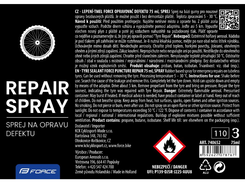 oprava defektu do velikosti 1 mm včetně nahuštění pláště až na cca 1,2 baru
