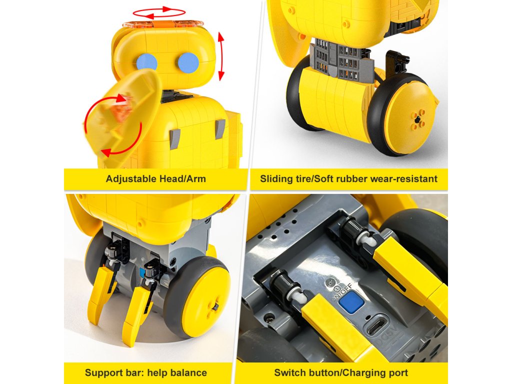 Objevte fascinující spojení robotiky a zábavy! MOULD KING 13100 je STEM robot se samovyvažováním, který se pohybuje na dvou kolech, zvládá rotaci o 360°, řízení vpřed/vzad a doleva/doprava, a to vše díky 6‑osému gyroskopu. Model lze ovládat jak dálkovým ovladačem, tak i aplikací v mobilu.