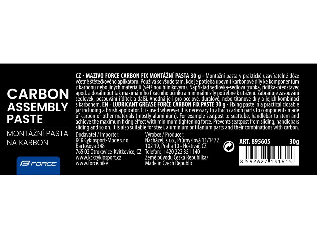 FORCE je přední česká značka v oblasti cyklistického vybavení a příslušenství, která od svého založení v roce 1991 získala důvěru cyklistů díky vysoké kvalitě a inovativním řešením. Firmu založil Dalibor Kmenta ve Zlíně, kde dodnes sídlí, a během několika let se z malého obchodu rozrostla v jednoho z hlavních výrobců cyklistických komponentů a doplňků v Česku.