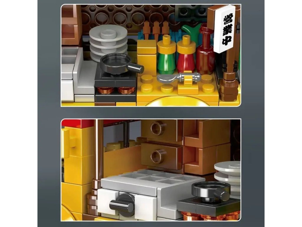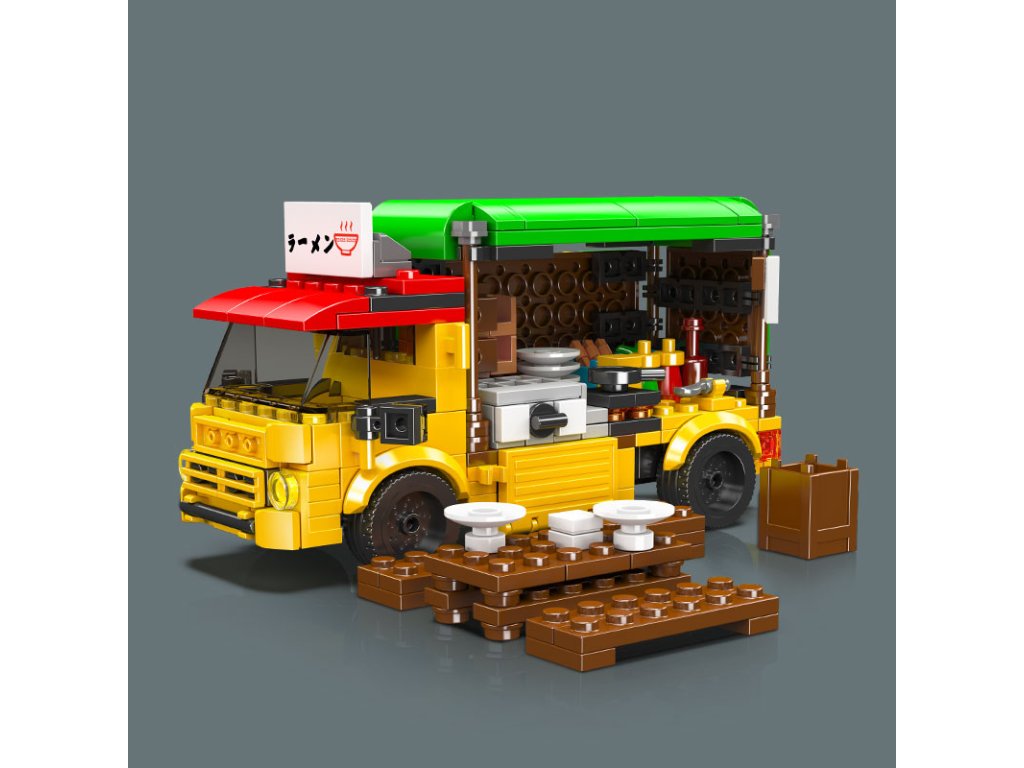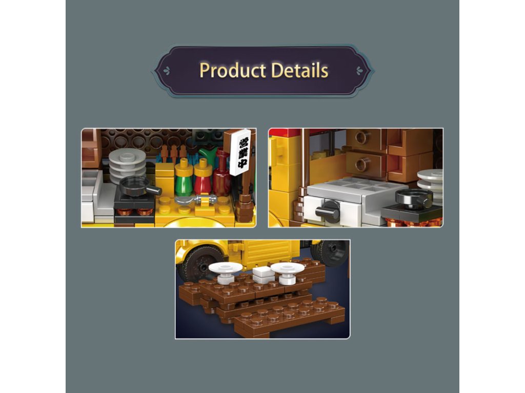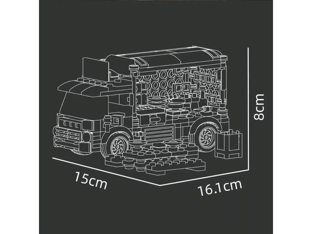 Přeneste atmosféru rušných městských ulic k sobě domů! Mobilní food truck MOULD KING 24064 nabízí realistické detaily – otevíratelný boční panel odkrývá vybavenou kuchyni plnou hrnců, lahví a misek, kde se připravují lahodné pokrmy. Kamión doplňuje venkovní posezení se stoly, takže výsledná scéna působí autenticky a láká k hraní i vystavení.