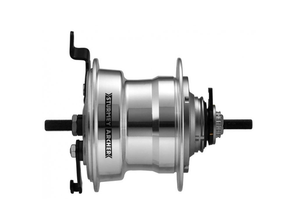5-rychlostní náboj Sturmey-Archer RXL-RD5 se zesílenou konstrukcí (např. pro e-bike) s rozsahem 243% a bubnovou brzdou 90mm.