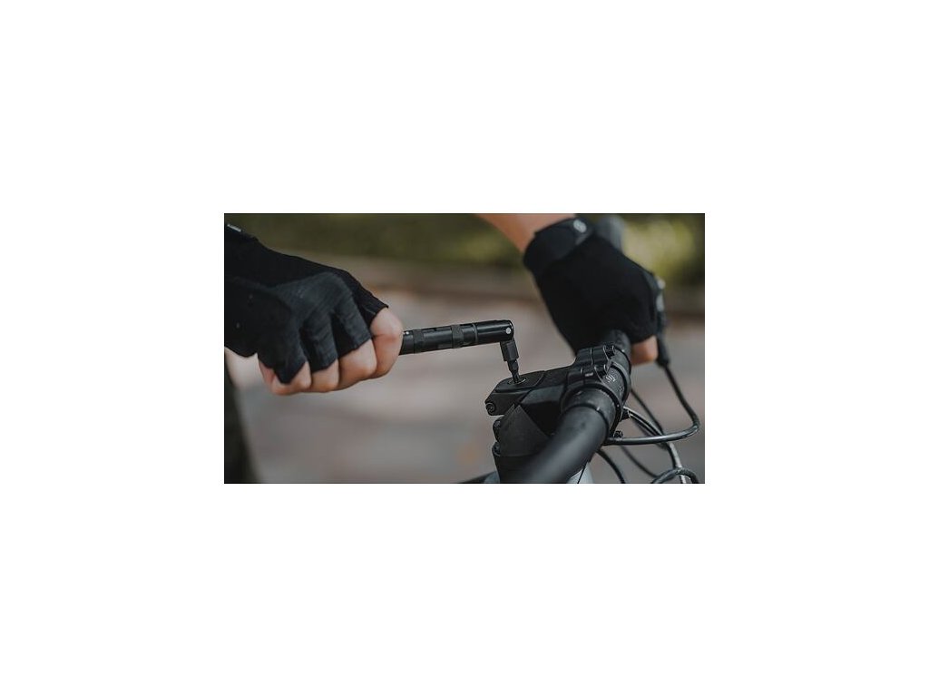 Tři snadno přístupné skryté kompaktní sady nářadí umístěné v koncích řídítek. Dokonalý společník pro vaše horské kolo. Sady jsou dodávány s 3,5mm nástrojem pro zasunutí knotu na opravu bezdušových plášťů a kompletní sadou imbusových bitů 3/4/5/6/10 mm, bitů T25 Torx® a křížových bitů #2 pro údržbu kola. Navíc nýtovačka řetězu s háčkem na řetěz.