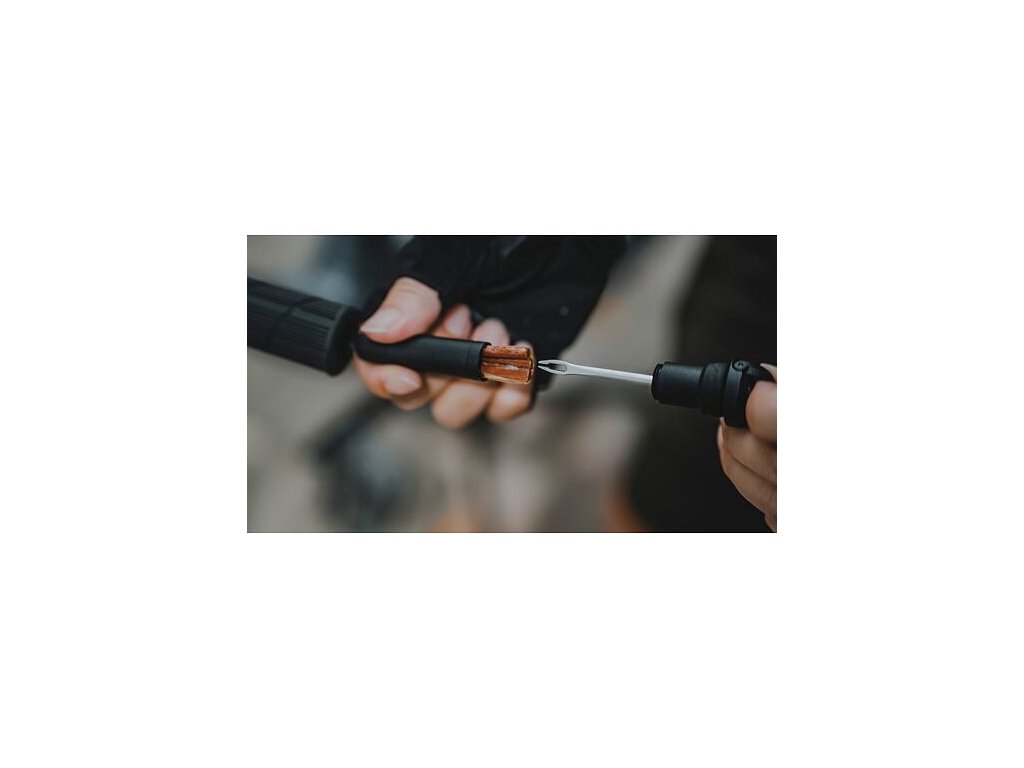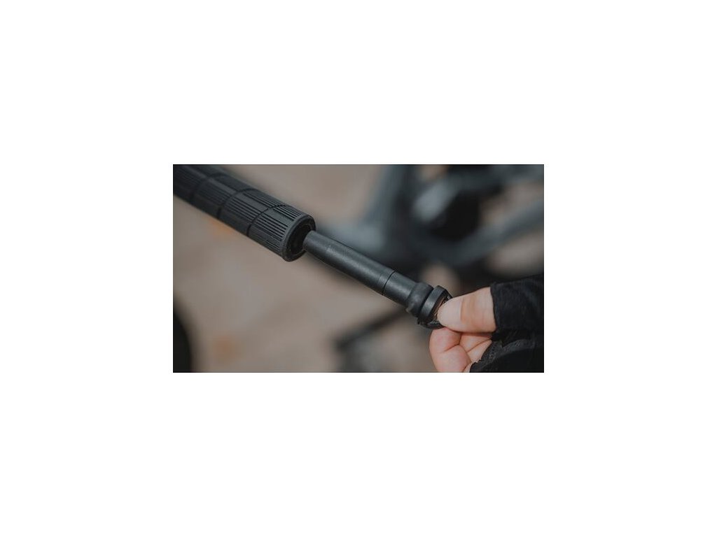 Dvě snadno přístupné skryté kompaktní sady nářadí umístěné v koncích řídítek. Dokonalý společník pro vaše horské kolo. Sady jsou dodávány s 3,5mm nástrojem pro zasunutí knotu na opravu bezdušových plášťů a kompletní sadou imbusových bitů 3/4/5/6/10 mm, bitů T25 Torx® a křížových bitů #2 pro údržbu kola.