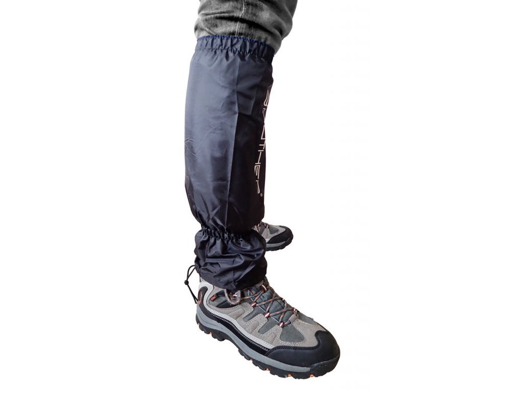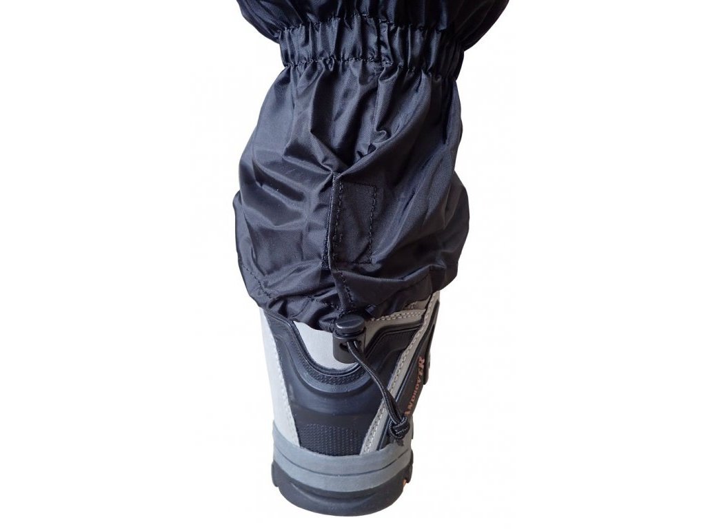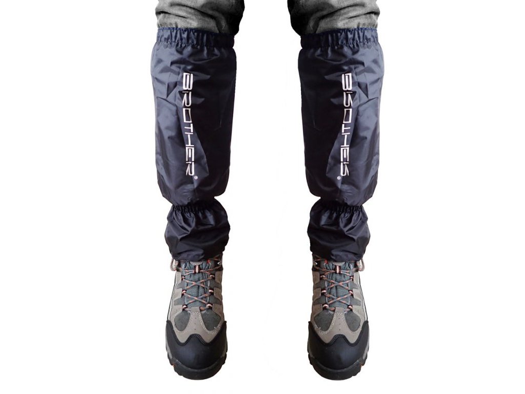 Textilní turistické návleky na boty. Použitý materiál je nylon 210T s voděodolným PE potahem uvnitř návleku. Dodání v černé barvě s potiskem BROTHER. Návlek má na výšku 43 cm, průměr návleku je 15 cm. Návlek má dvě pevné gumy a jednu stahovací šňůru, kterou se návlek upevní na lýtko nohou podle potřeby. Universální velikost. Balení v sáčku s visačkou obsahuje 1 pár návleků.
