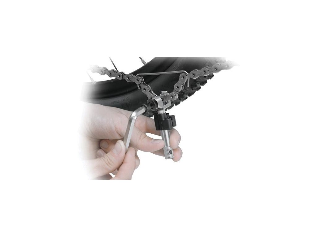 Vysoce kvalitní nářadí na řetězy s dlouhou životností z lité CrMo oceli pro jedno a vícerychlostní řetězy až do 13 rychlostí, včetně řetězů s dutým čepem Campagnolo®. Obsahuje imbusové klíče 4 a 5 mm a háček na řetěz.