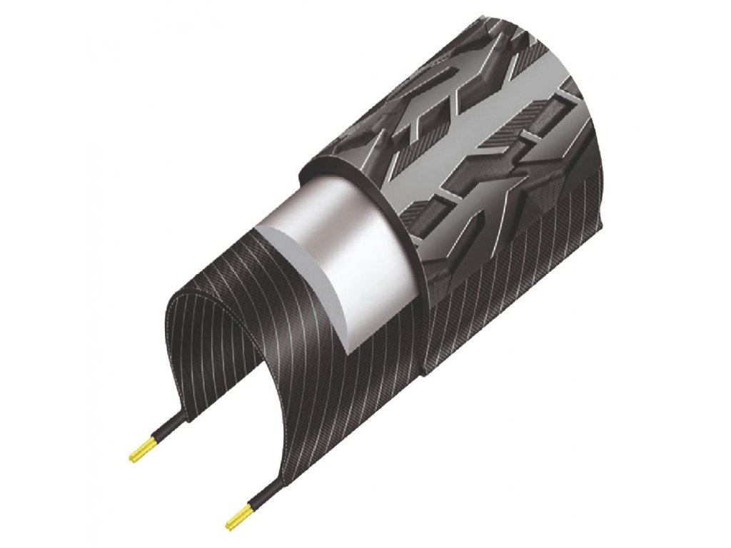Speciální ochrana proti defektu: Mezi běhoun a plášť je vložena další vrstva 1/3/5 mm vysoké pryžové směsi, která pomáhá zabránit proniknutí ostrých předmětů do pláště a zamezí tak poškození duše.