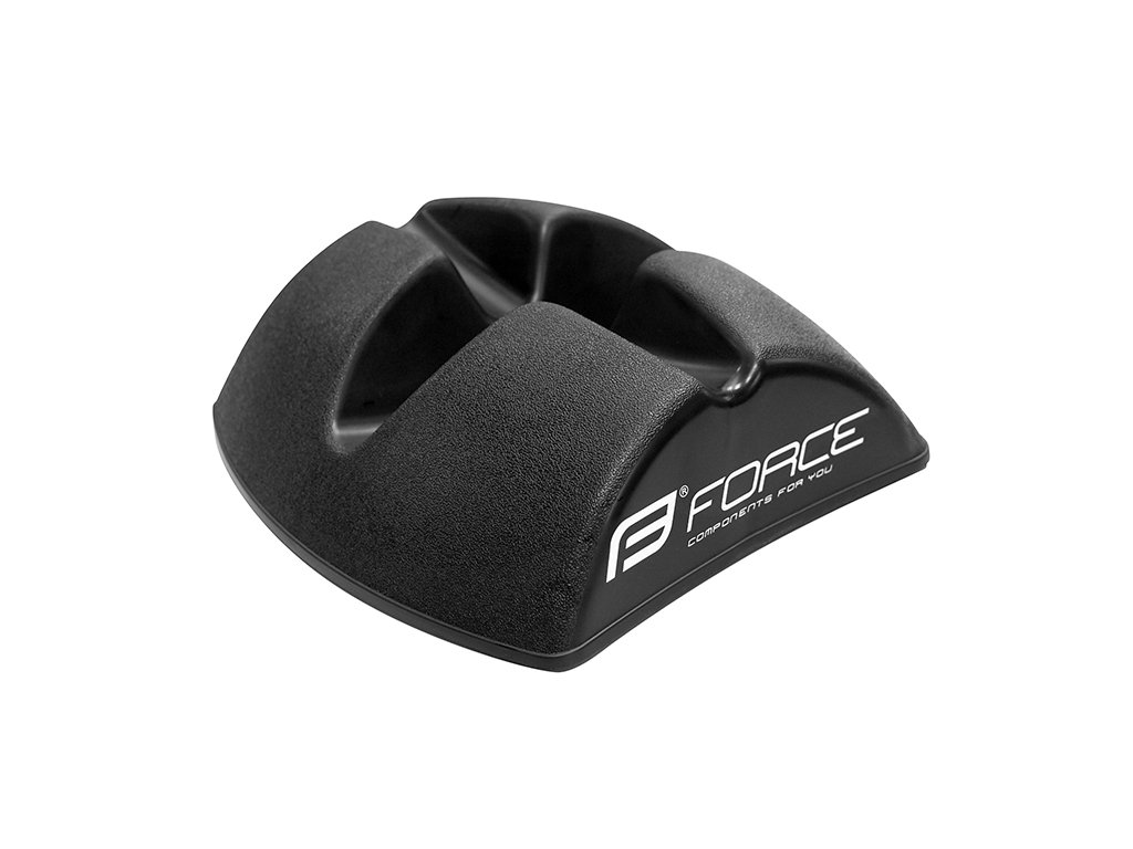 Zadní kolo upnuté v cyklistickém trenažeru bývá mírně zvednuté oproti tomu přednímu. K dosažení správné polohy Vám pomůže podložka, která je přizpůsobena k bezpečnému usazení předního kola.