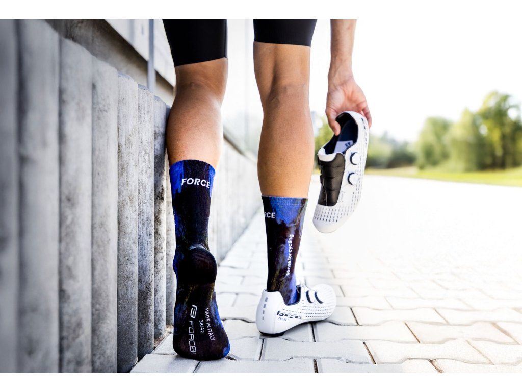 FORCE SUBLIME jsou vysoké sportovní ponožky s výrazným designem vytvořeným sublimační technologií. Jsou vyrobeny z vysoce prodyšného materiálu (90 % polyester, 10 % elastan), který zajišťuje pohodlí a odvod potu při cyklistice i dalších sportech. Prémiová italská výroba je zárukou kvality a dlouhé životnosti.vyšší cyklistické ponožky FORCE i pro další sporty