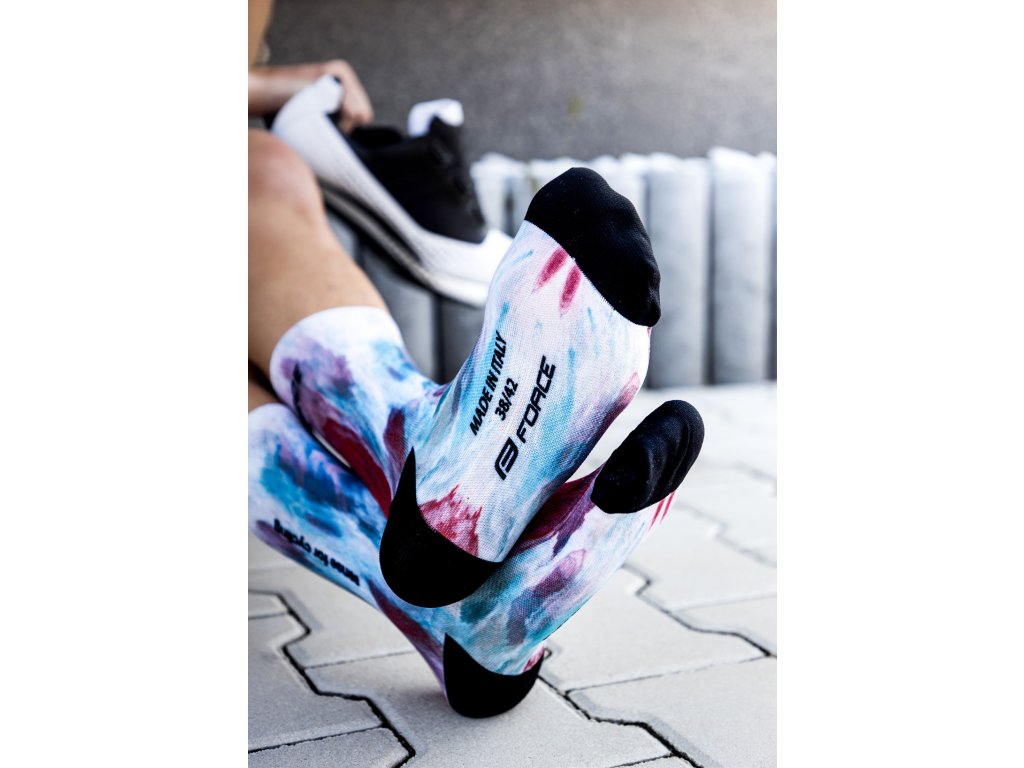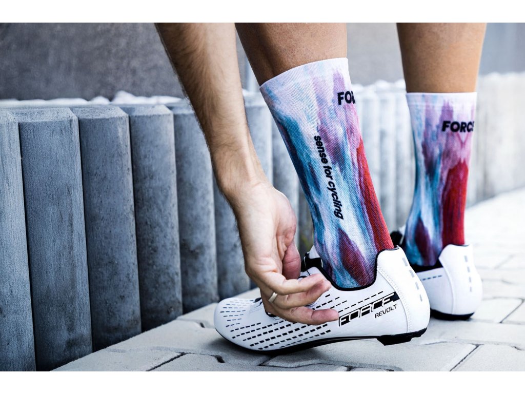 FORCE SUBLIME jsou vysoké sportovní ponožky s výrazným designem vytvořeným sublimační technologií. Jsou vyrobeny z vysoce prodyšného materiálu (90 % polyester, 10 % elastan), který zajišťuje pohodlí a odvod potu při cyklistice i dalších sportech. Prémiová italská výroba je zárukou kvality a dlouhé životnosti.vyšší cyklistické ponožky FORCE i pro další sporty
