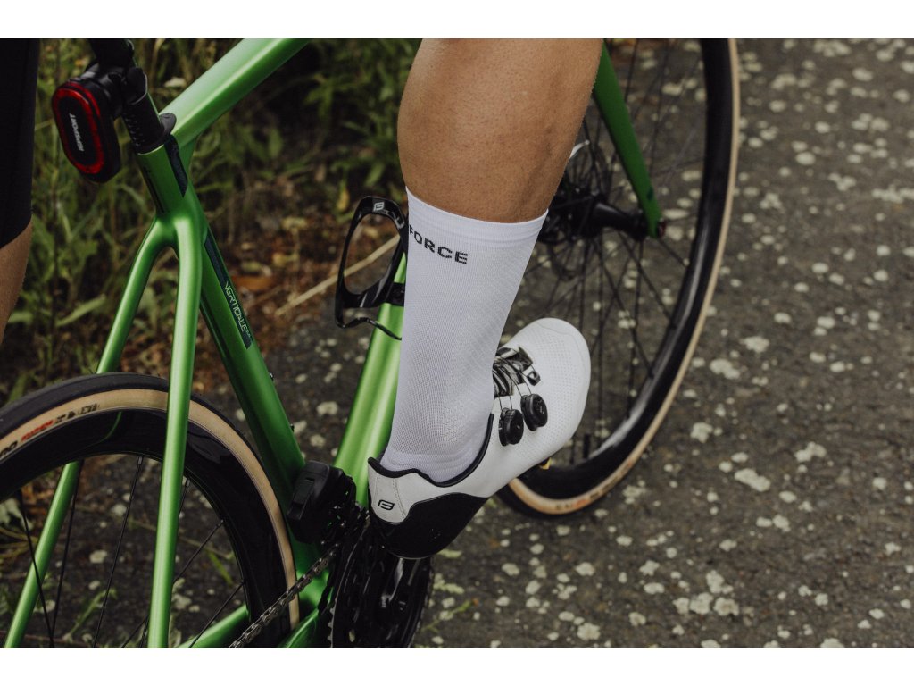 Prémiové vyšší cyklistické ponožky FORCE jsou vyrobené v Itálii z vysoce prodyšného a extra kompresního materiálu pro maximální výkon a pohodlí. Díky preciznímu designu, zesíleným partiím a spolupráci s profesionálními závodníky poskytují skvělou podporu a efektivní přenos síly na pedál. Každý detail těchto ponožek odráží italskou kvalitu a důraz na technickou dokonalost.