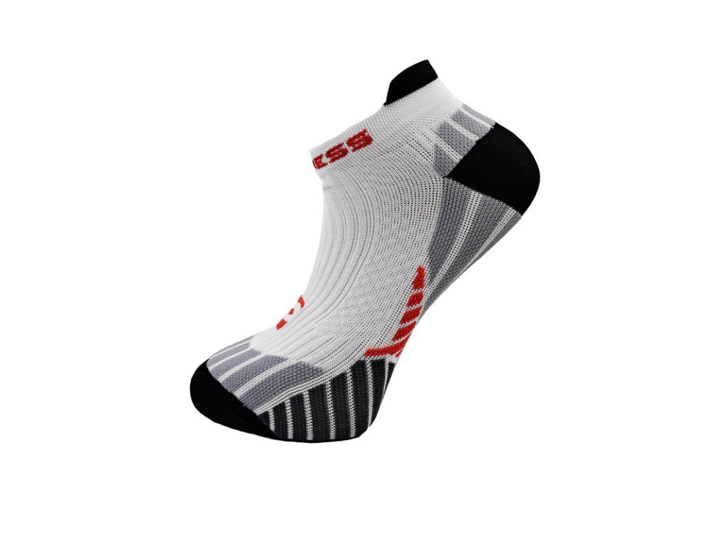 Ponožky SNAKER SPORT SOX jsou určená zejména pro běh. Charakteristickým znakem je pro ně anatomičnost a perfektní posazení na noze. Běžný elastický pásek v chodidle je nahrazen pružným materiálem v celé ponožce a tak se na nohou usadí doslova jako druhá kůže. Tenký materiál předurčuje ponožku pro letní použití, maximální efektivity odvodu potu dosahují ponožky zejména s těmi modely obuvi, které jsou schopny odvětrávání i v chodidlové části. Celoelastická konstrukce je doplněna o jemné odvětrané plyšování v oblasti Achilovky a chodidle. Pata a špice jsou zesílené, samozřejmostí je plochý šev. Použitý polyester může připomínat bavlnu, zachovává si však potřebnou funkčnost.